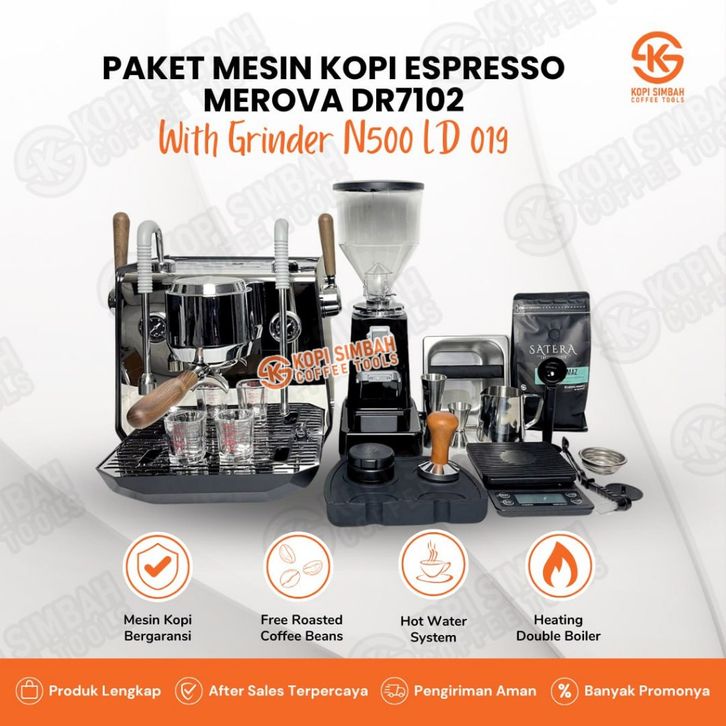 Paket Mesin Espresso Merova DR7102 With Coffee Grinder Set Mesin Alat Seduh Pembuat Kopi Espreso