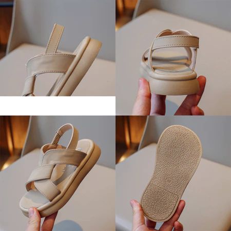 Luckyfankids Sandal Anak Serene Slop Kasual Formal Putih & Cokelat - SA-83