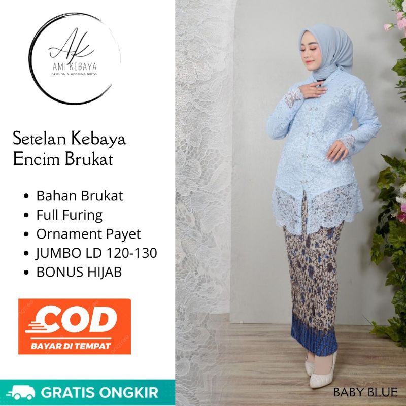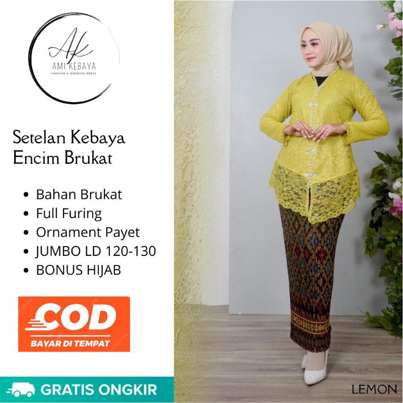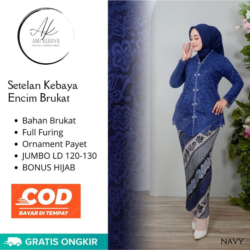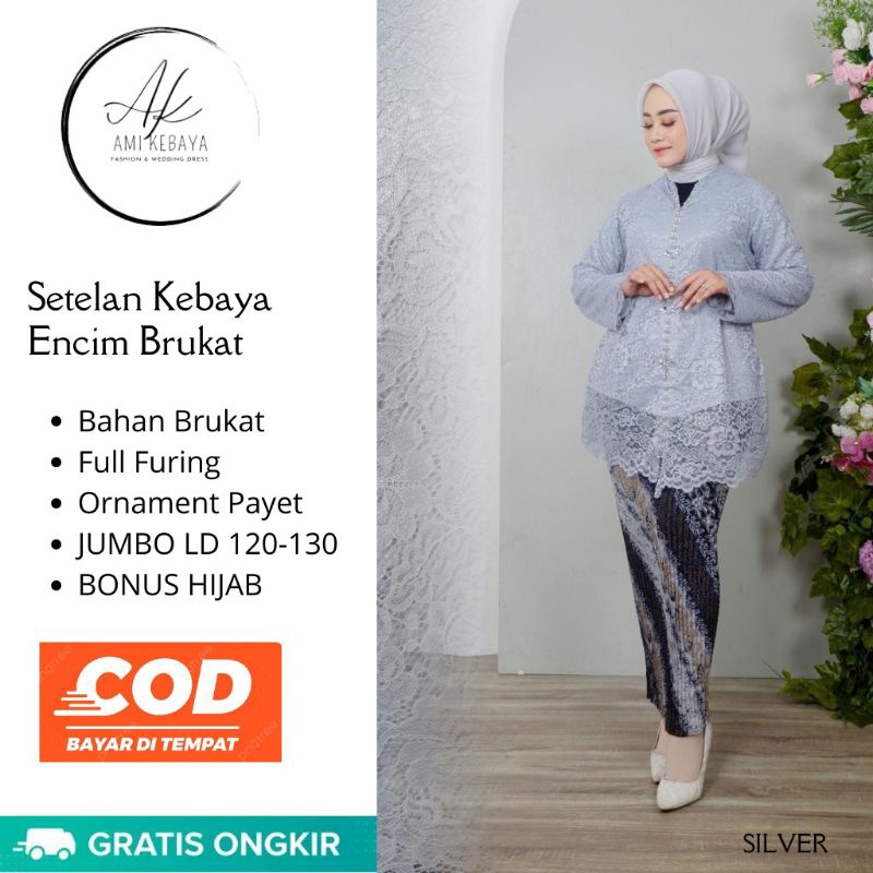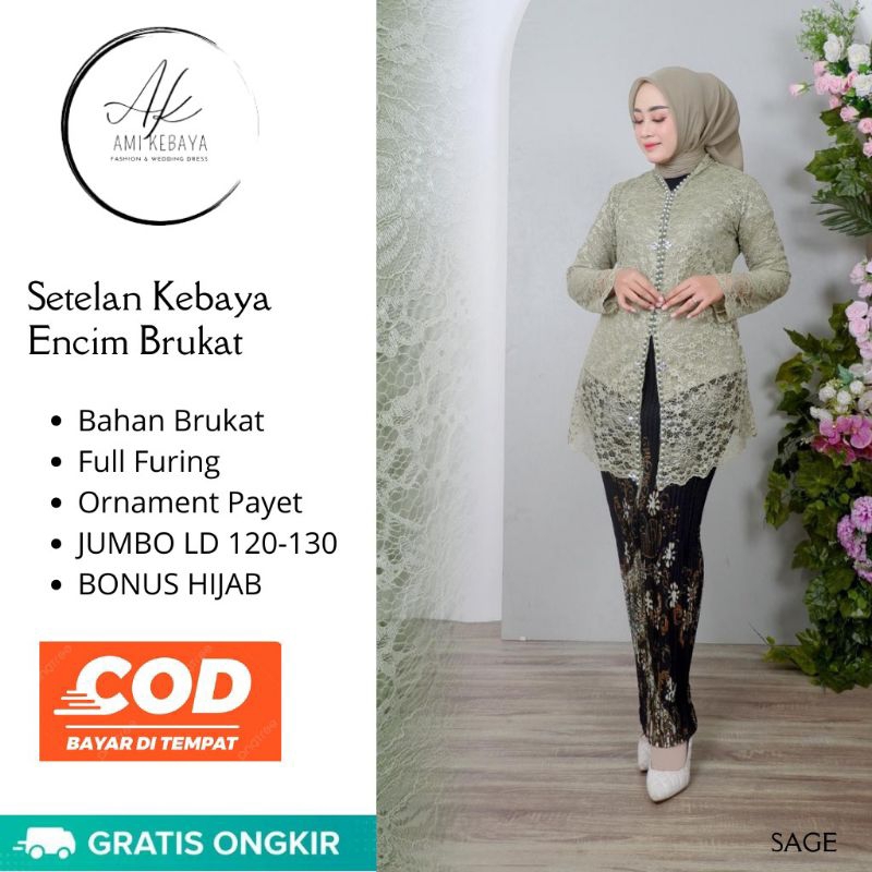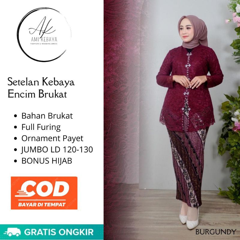 Setelan Kebaya Encim Brukat Free Hijab | Kebaya Jumbo Fit Ld 120-130 cm | Brukat Malika | Kebaya Wisuda | Brokat | Kebay