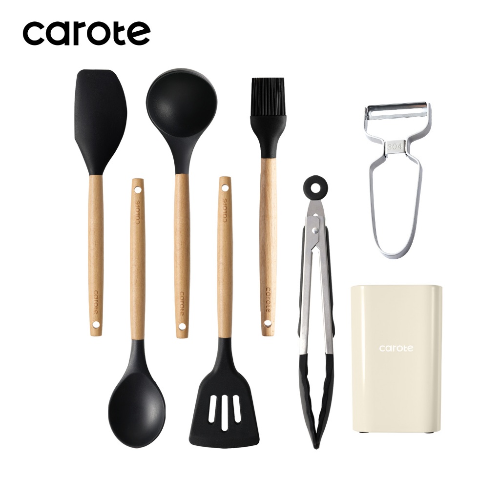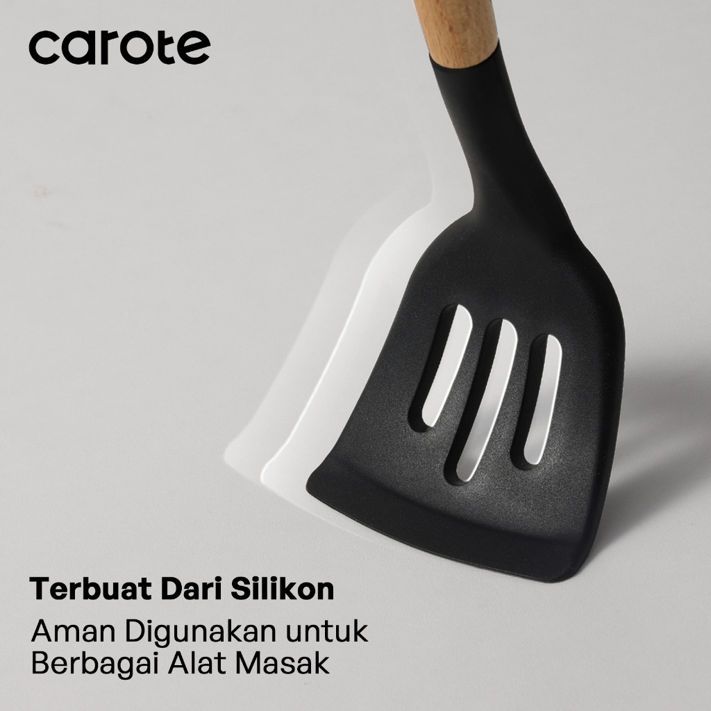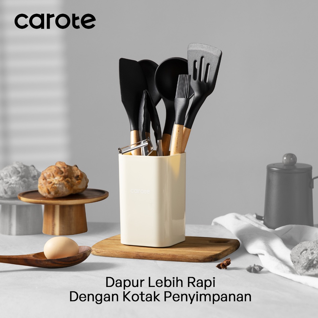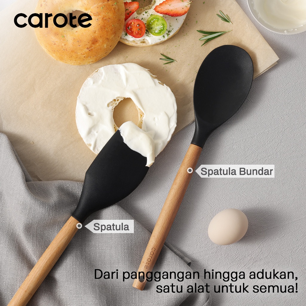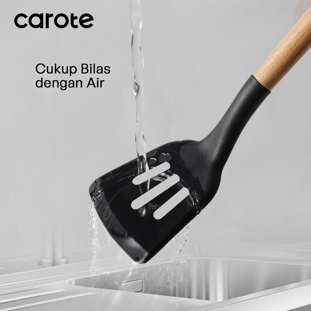 CAROTE SET PERALATAN DAPUR 8 PCS SPATULA SILIKON GAGANG KAYU TAHAN SUHU HINGGA 220°C DILENGKAPI KOTAK PENYIMPANAN MUDAH DIBERSIHKAN ANTI LENGKET FOOD GRADE HITAM