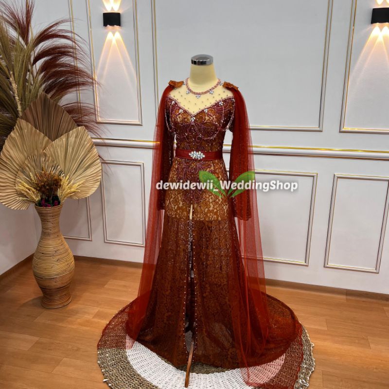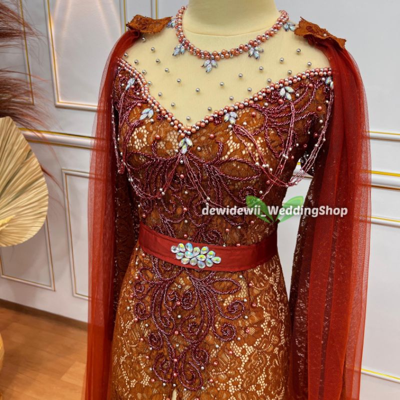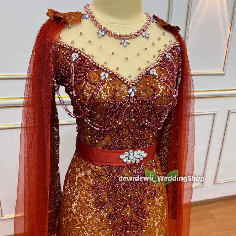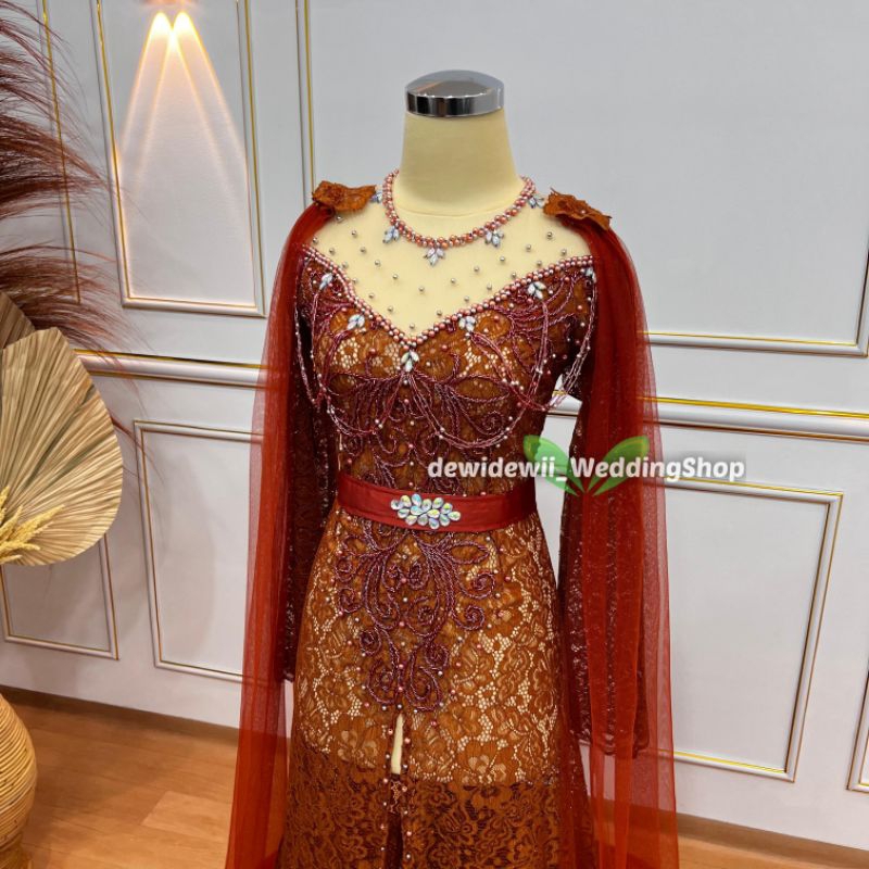 Kebaya Pengantin Cantik / Broklat Ekor Panjang + Slayer - Warna Lengkap