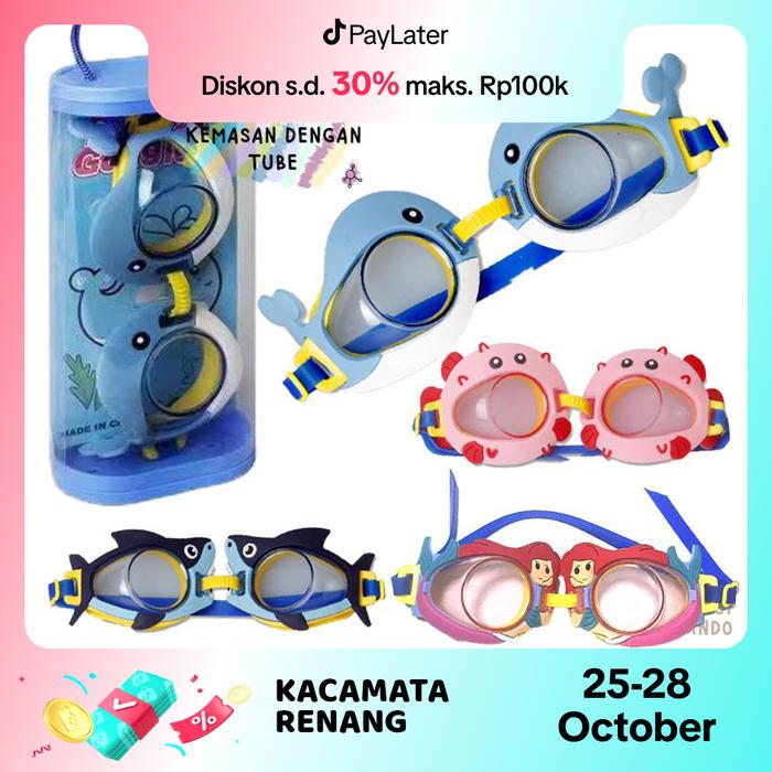 Kacamata Renang Anak Karakter Kaca Mata Swimming Diving Googles - Kuda Nil+Tube