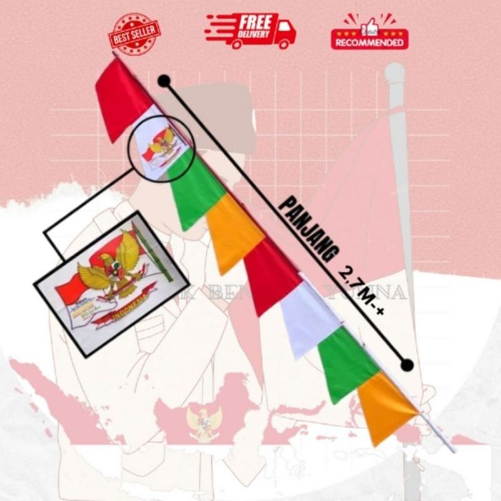 Bendera 1kodi isi 20pcs umbul umbul merah putih lambang garuda