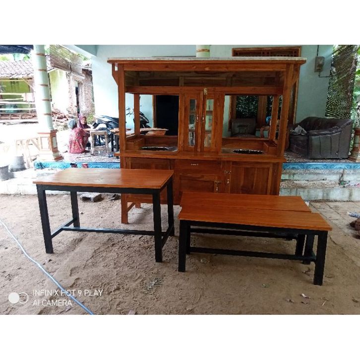 gerobak bakso dan mie ayam kayu jati dan satu set meja kursi free ongkir