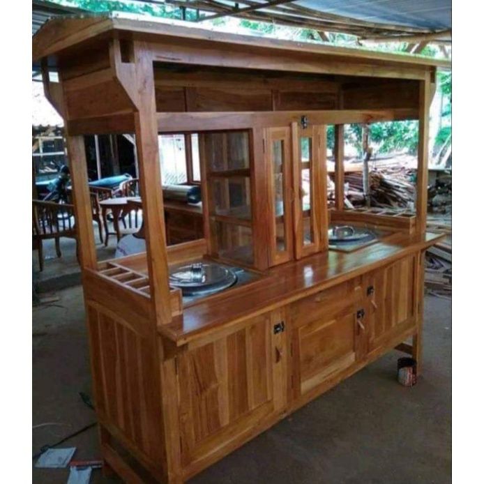 gerobak mie ayam bakso kayu jati dua dandang dan satu set meja kursi free ongkir