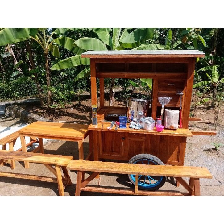 gerobak mie ayam kayu jati dan meja kursi free ongkir