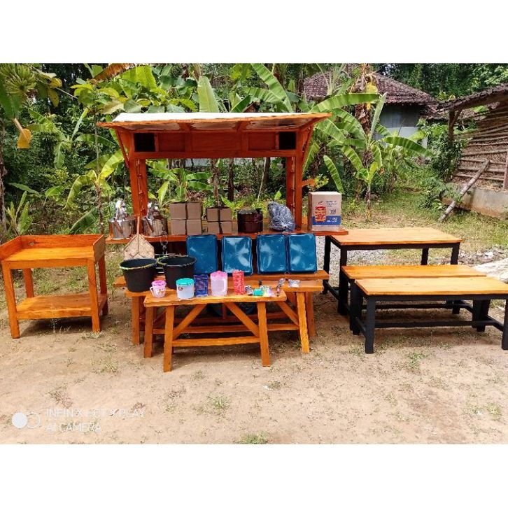 gerobak angkringan komplit tungku pisah dan satu set meja kursi free ongkir