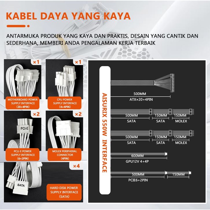 Power Supply 650W Gaming 550 W 80+ Bronze White PSU 550W/650W 80PLUS Bronze