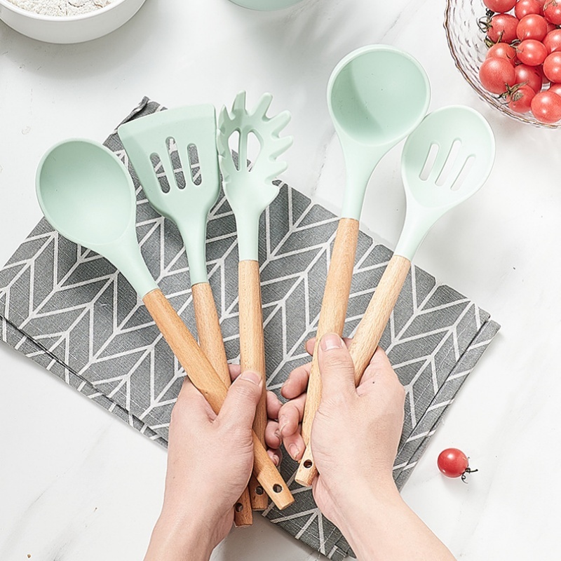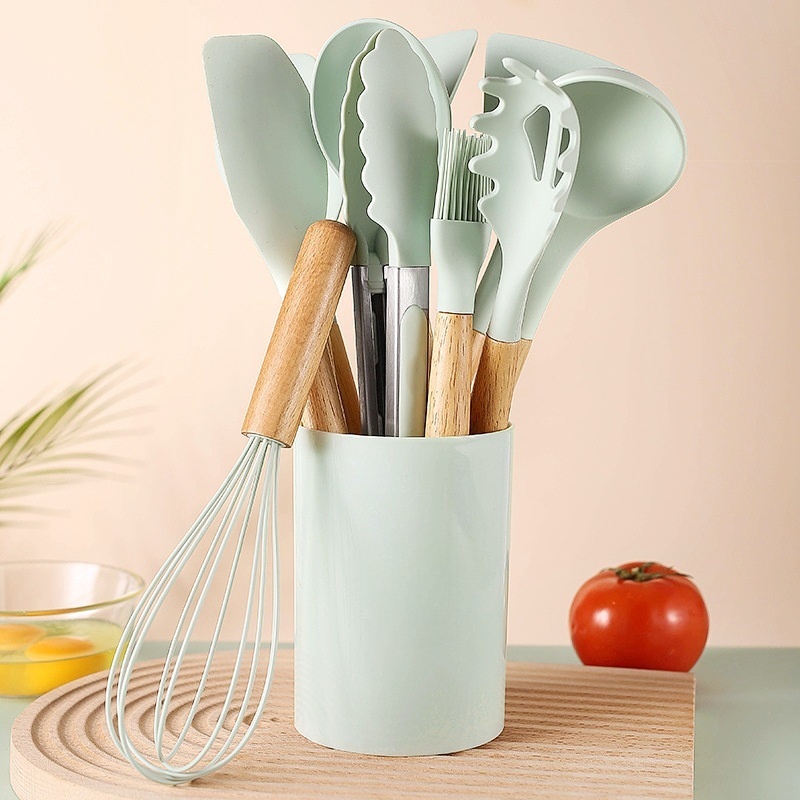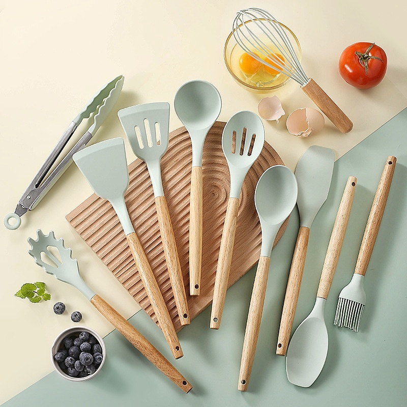 SILICON SPATULA SET 12IN1/SPATULA SET SILICONE TAHAN PANAS STEIN COOKWARE/SPATULA MASAK PEGANGAN KAYU BAKING SET ALAT MASAK/ALAT MASAK SILIKON/PERALATAN MASAK GORENG TUMIS REBUS