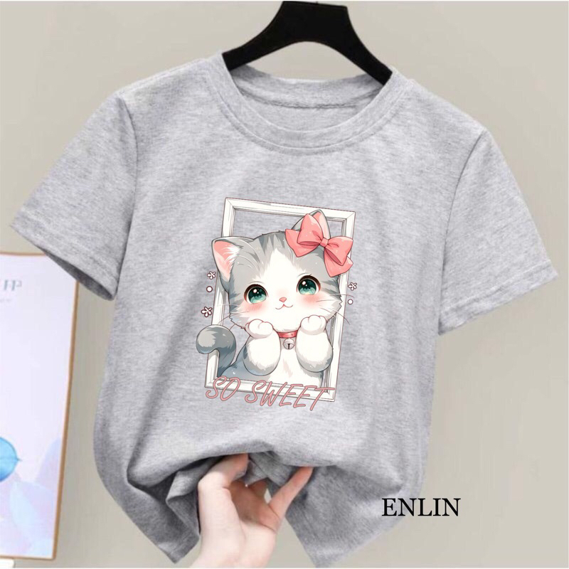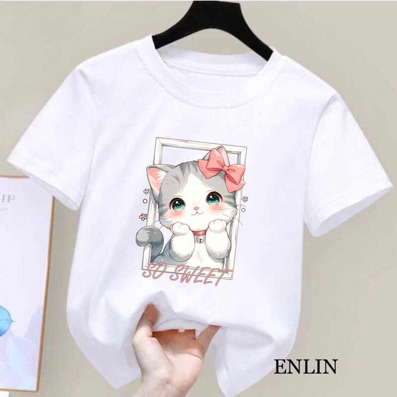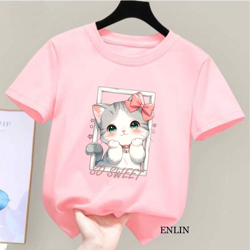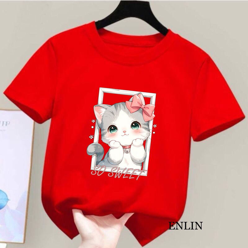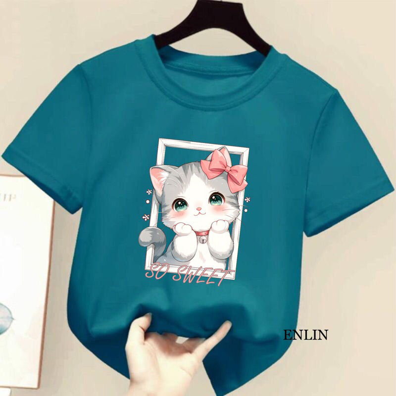 Baju Kaos Anak Perempuan Motif Kucing - Anak Cewek Usia 2-10thn Kualitas Terbaru Termurah Terlaris Official Store