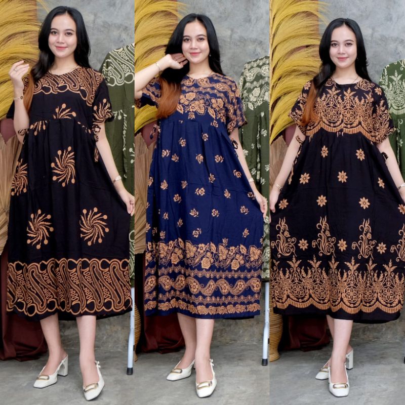 Paket 3pcs Baju Daster Chibi Cherry Wanita Batik Lengan Pendek Bahan Adem Lembut Kekinian