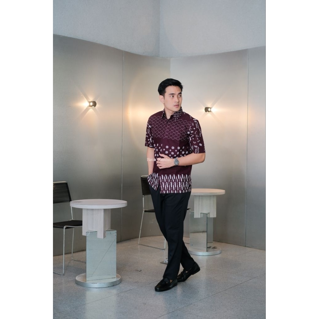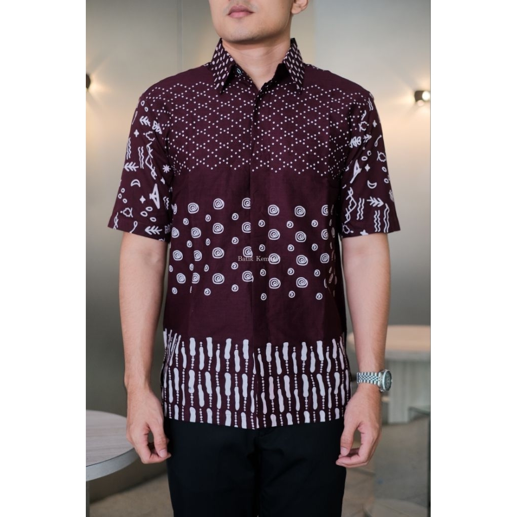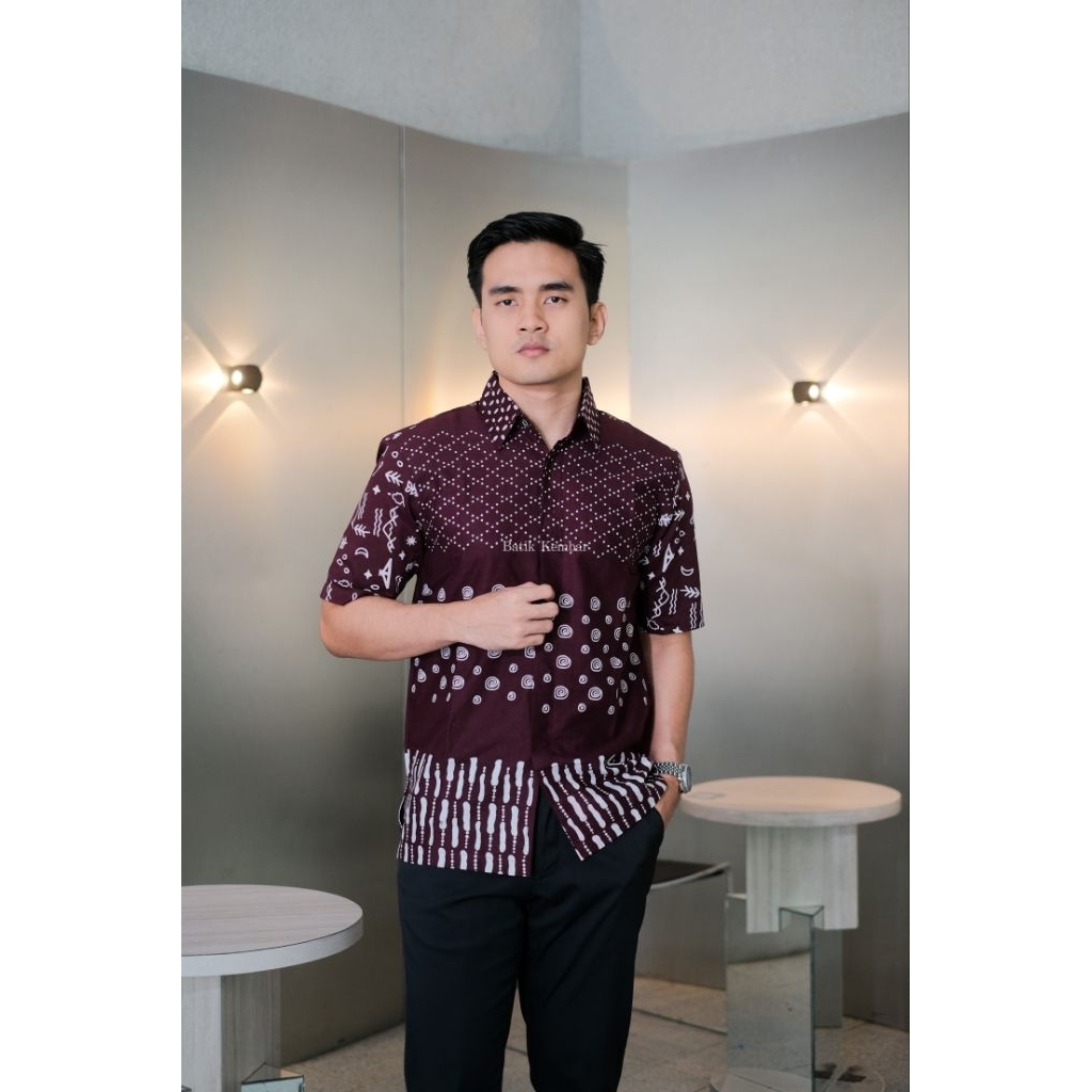 LENGAN PENDEK Baju Batik Pria Reguler Motif KINANTI MERAH Kain Katun Lapisan Furing