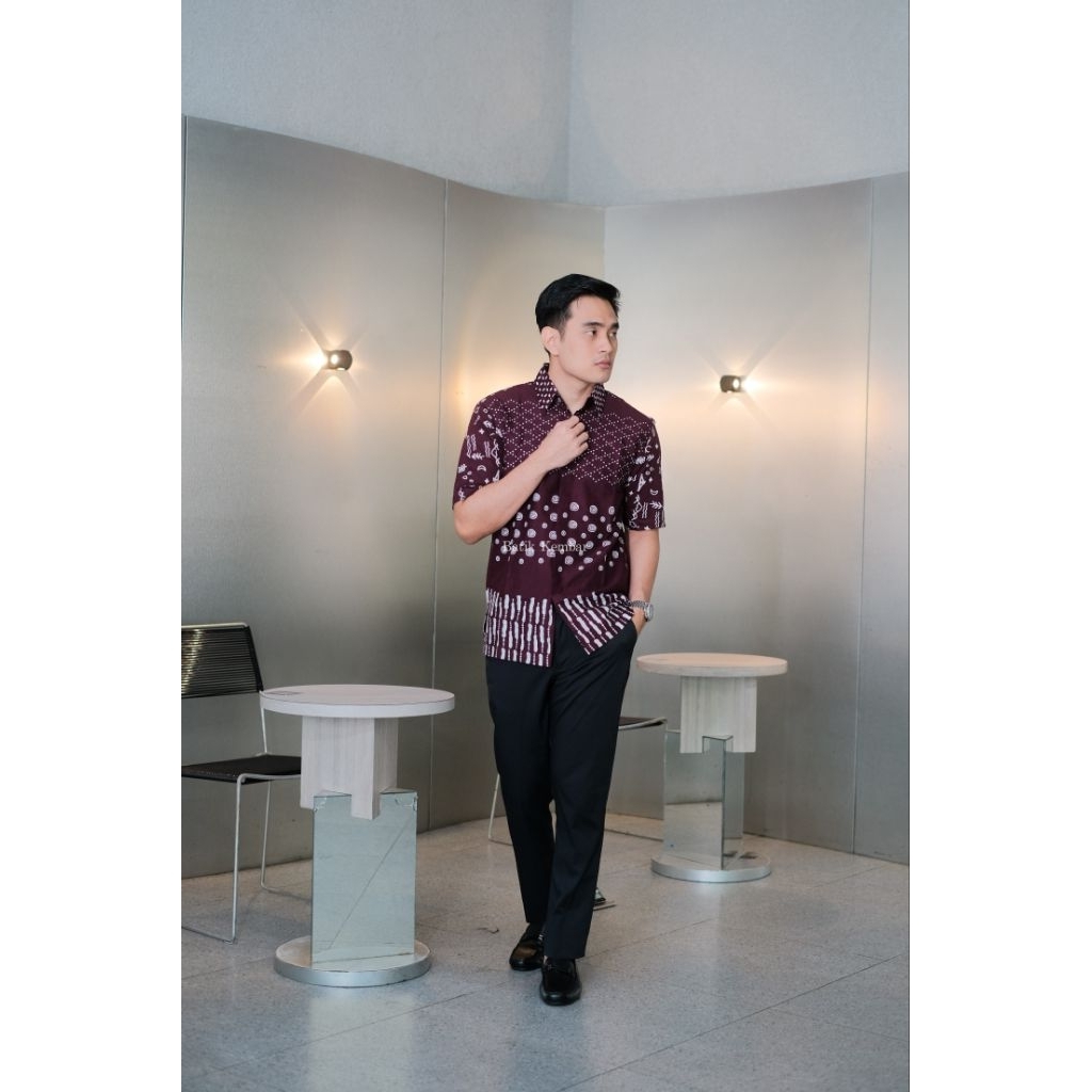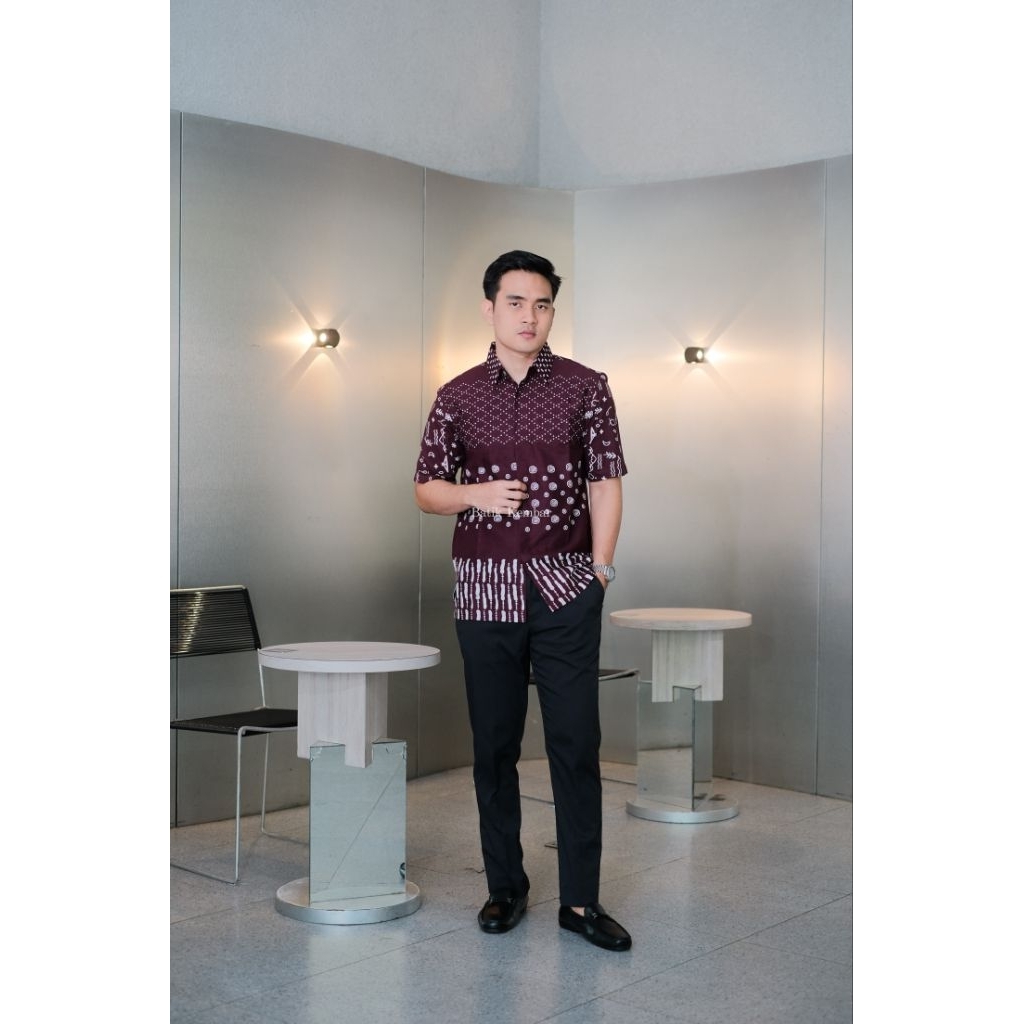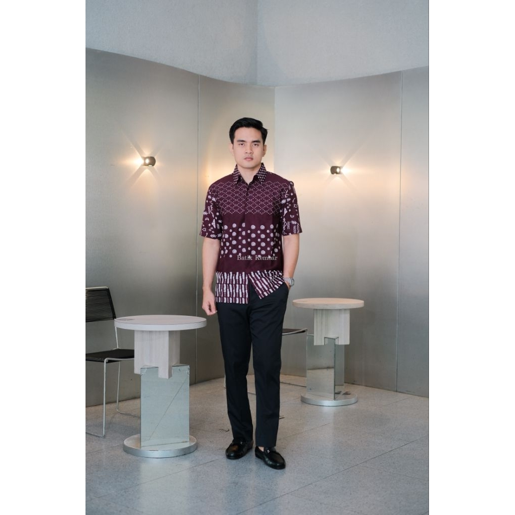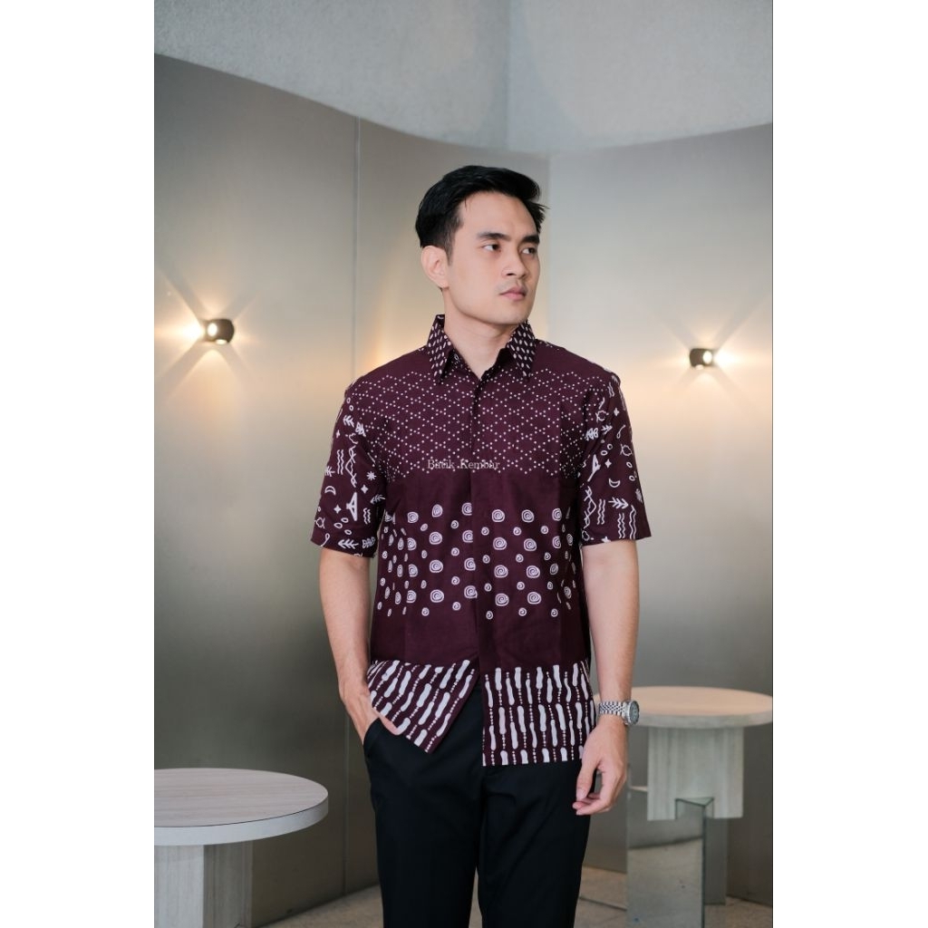 LENGAN PENDEK Baju Batik Pria Reguler Motif KINANTI MERAH Kain Katun Lapisan Furing