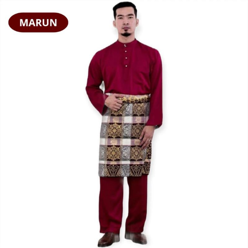 STELAN BAJU MELAYU PRIA / SETCEL KOKO TELUK BELANGA & CEKAK MUSANG - WARNA MARUN