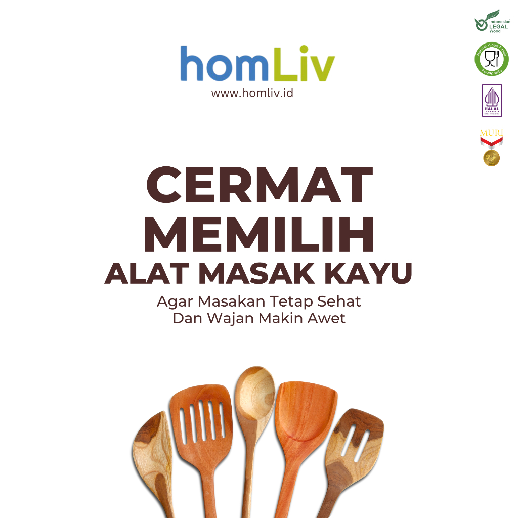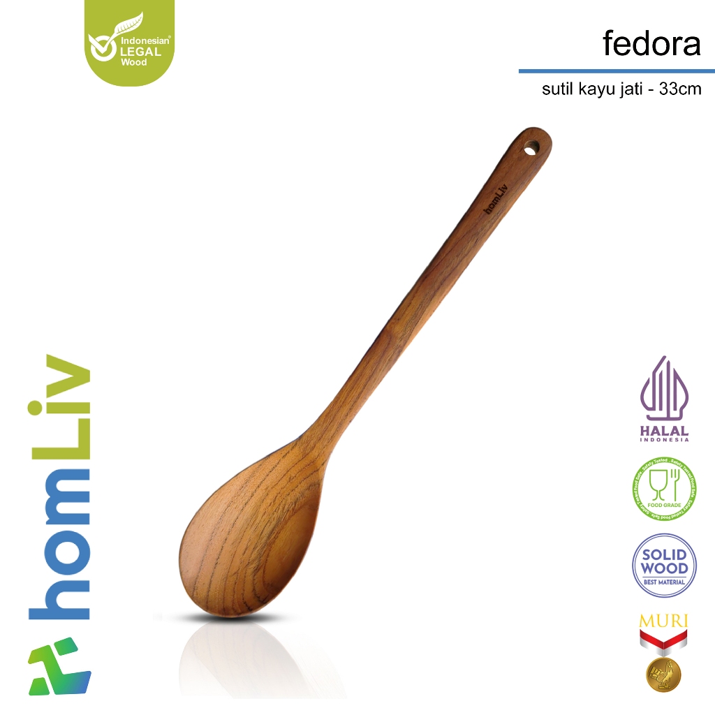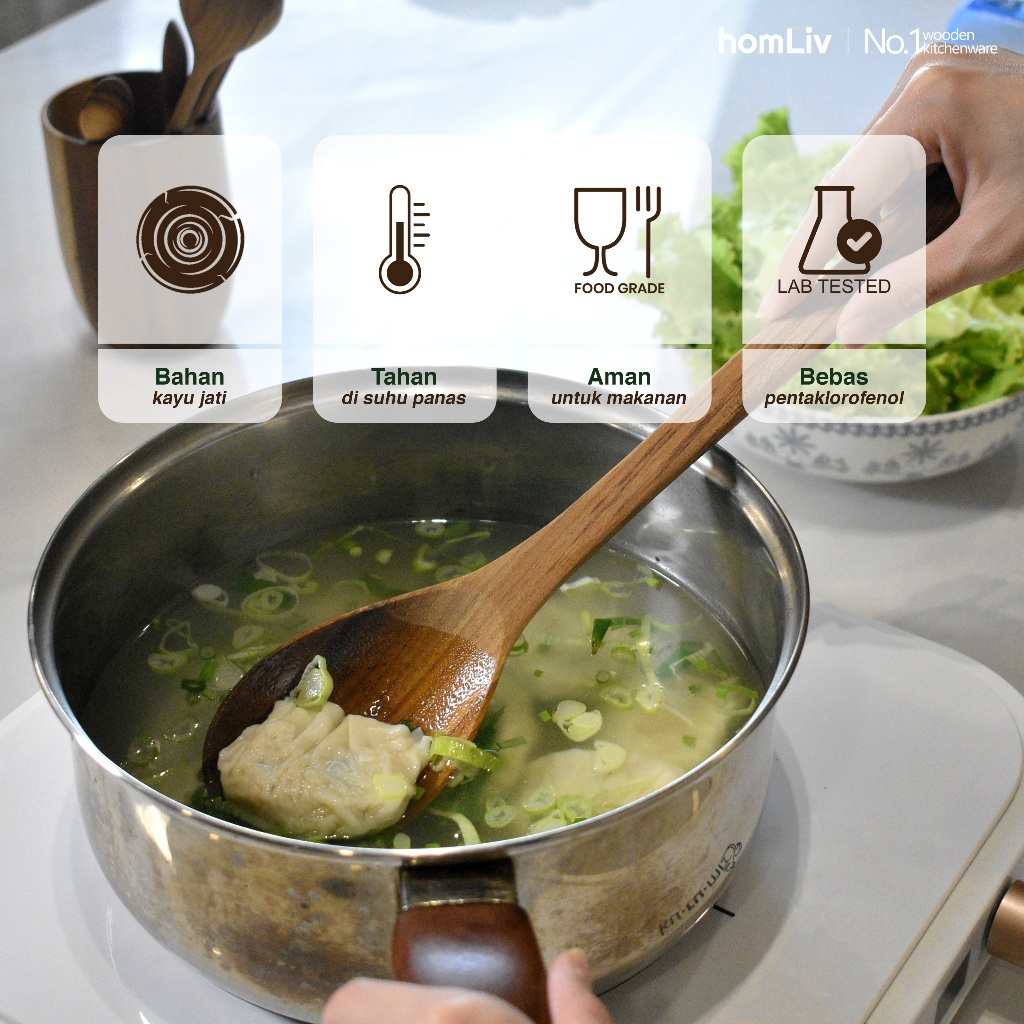 HOMLIV SUTIL KAYU JATI 33 CM FEDORA TEAK WOOD ALAT MASAK FOODGRADE 07257