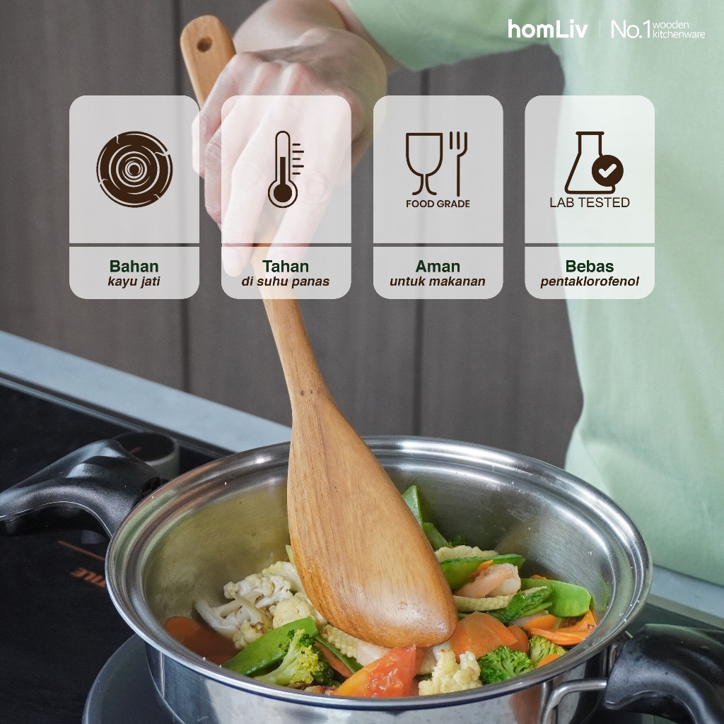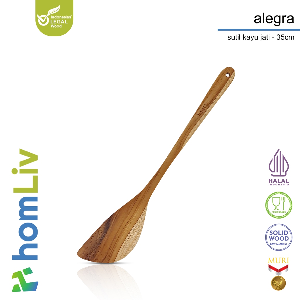 HOMLIV SUTIL KAYU JATI PREMIUM 35 CM ALEGRA TEAK WOOD ALAT MASAK FOODGRADE 07257
