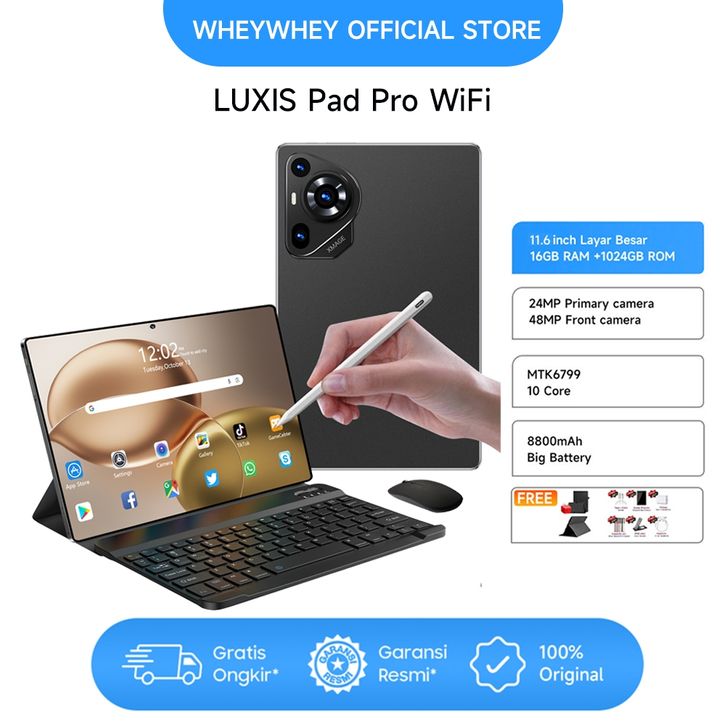 Wheywhey Tablet Pad Pro 11.6 Inch Ips 16Gb+1024Gb Kamera 48Mp + Baterai 8800Mah 5G Wifi Dual Sim Untuk Keluarga Sekolah