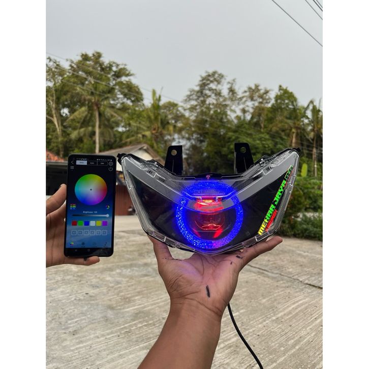 Reflektor lampu depan BEAT DELUXE GEN 1 biled matrix x1 RGB ring BULAT AKRILIK bebas ganti warna via blotoot