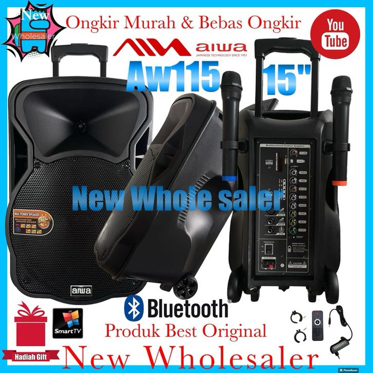 Speaker aktif Sound Portable Aiwa Aw115 15 inch wireless extra super bass original Aw 115