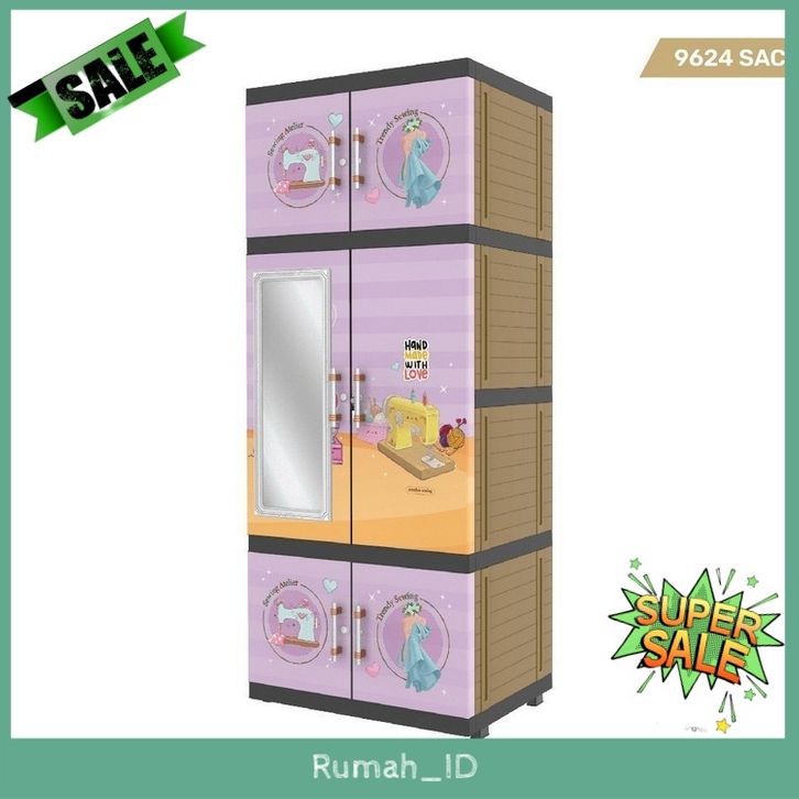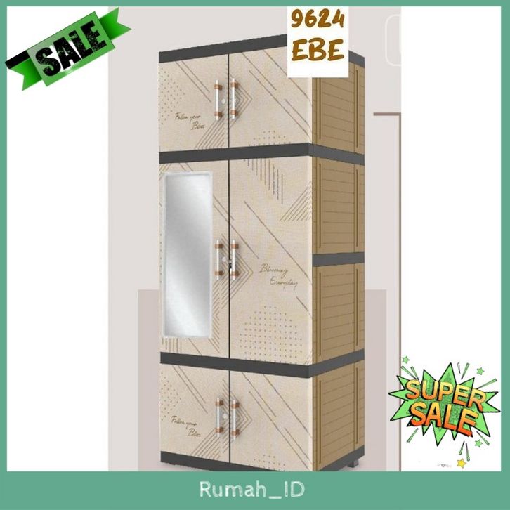 Naiba Fit 9524 / 9504 - Lemari Plastik Naiba FIT Jumbo Kaca MIROR + Kunci FULL RAK | Cabinet Jumbo Naiba Kaca / Rak Plas