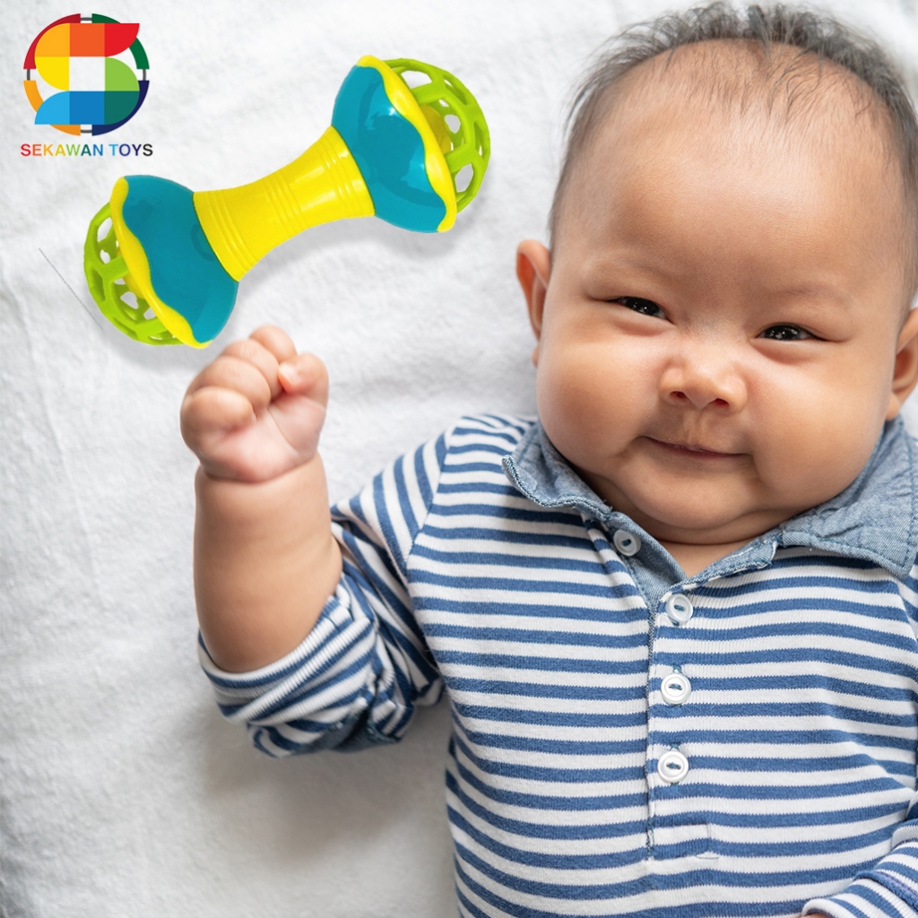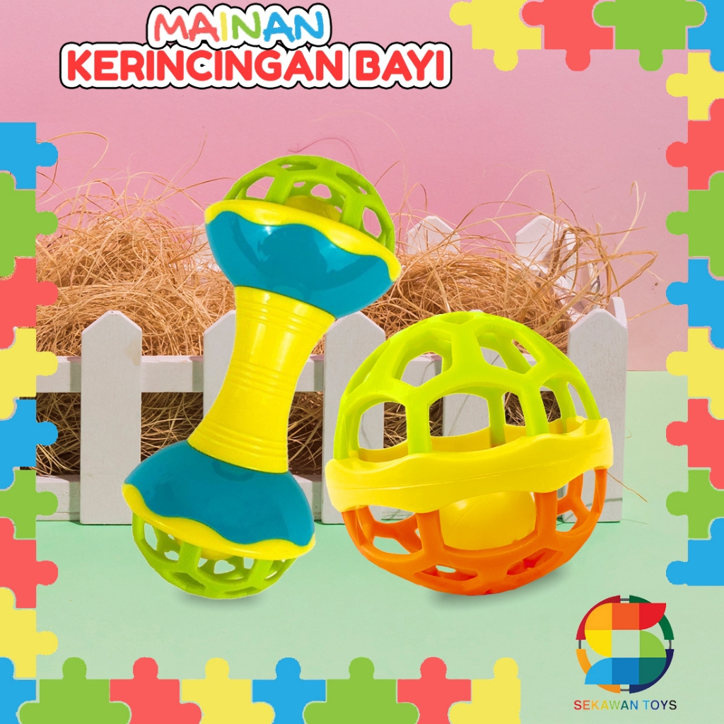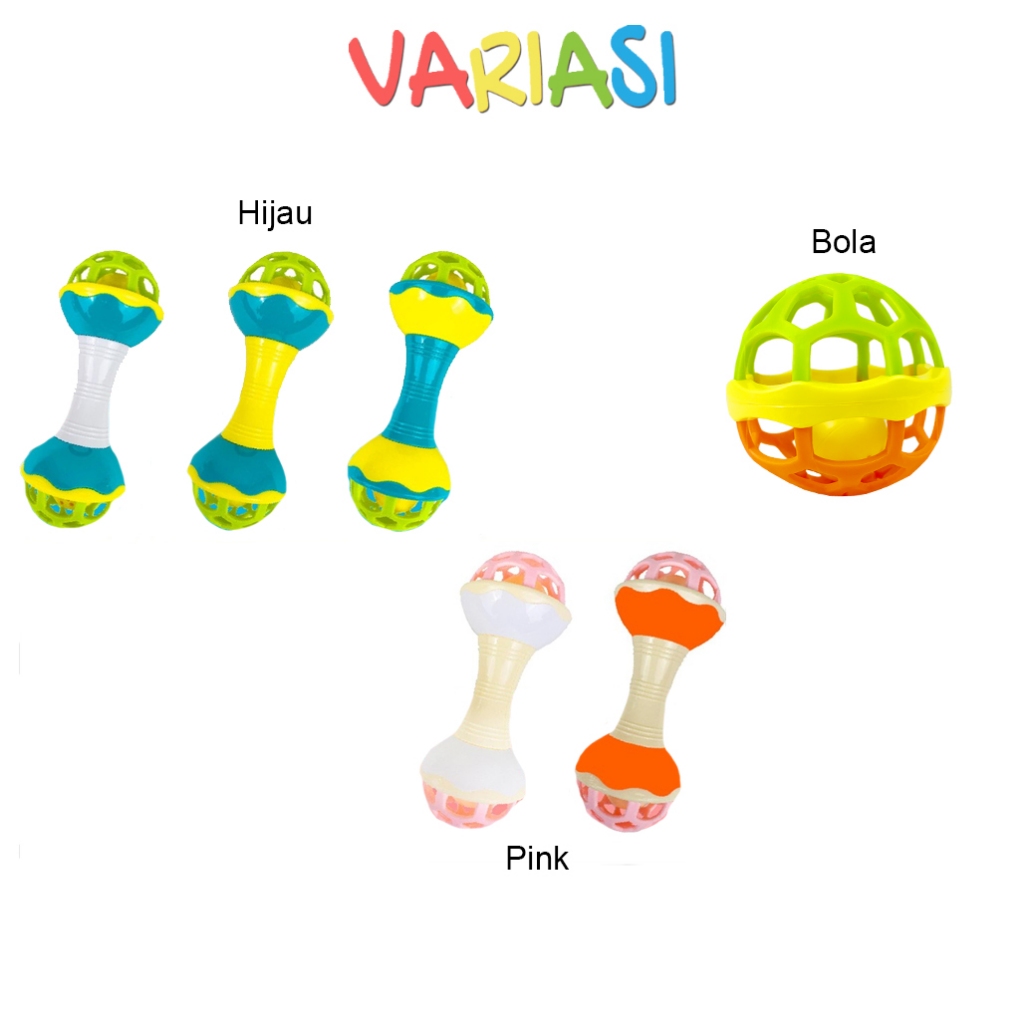 Mainan Bayi Kerincingan Barbel/ Baby Rattle/Kerincingan Bayi Bola Elastis/ Gigitan Bayi 2IN1 86