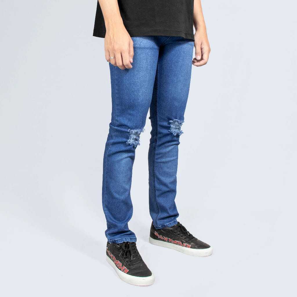 MINOSTYLE - Celana jeans pria sobek abu grey slimfit stretch panjang cowok ripped celana denim dewasa robek skinny pensil korea style