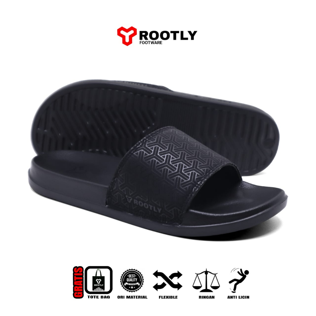 Rootly - Sandal Pria Motif Full Black Flip Flop