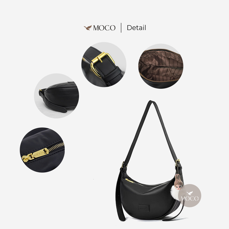 【Nina Hobo Bag】MOCO Fashion Tas Selempang Wanita Crybaby Bag Charm Bulu Half Moon Sling Bag 2239