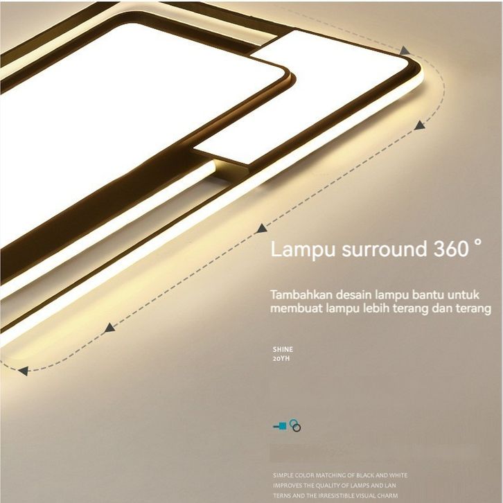 LAMPU HIAS RUANG TAMU / LAMPU PLAFON 3 WARNA LED MODERN MINIMALIS BENTUK PERSEGI GAYA NORDIC UNTUK DEKORASI RUANG TAMU