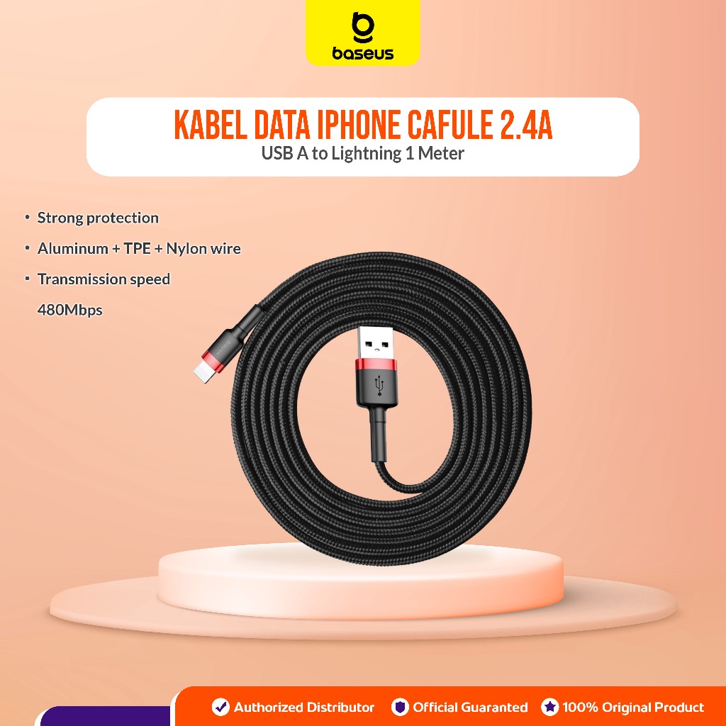 BASEUS ORIGINAL Kabel Data Iphone Cafule 2.4A 1M 100cm Lightning USB for Apple Iphone 5 6 7 8 Cable