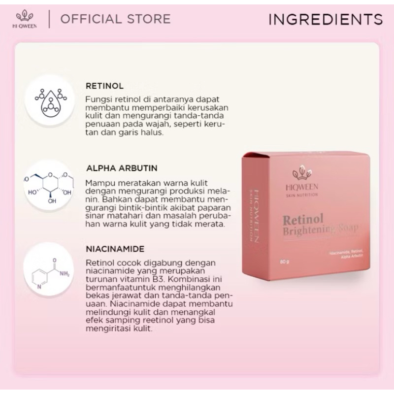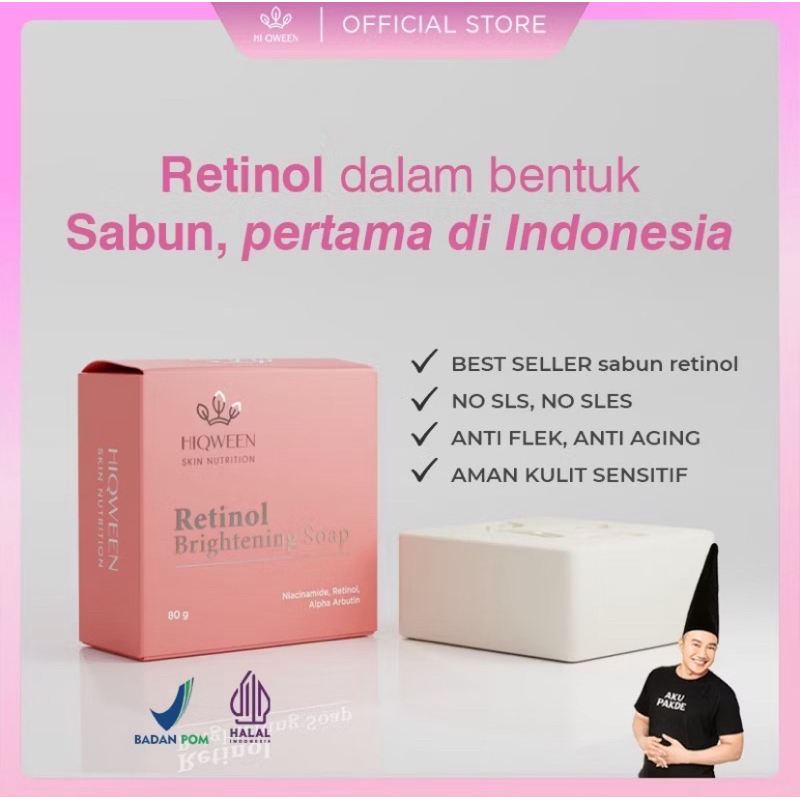 Hiqween Retinol Brigthening Soap - Facial Wash Sabun Cuci Muka Pemutih Penghilang Flek Hitam