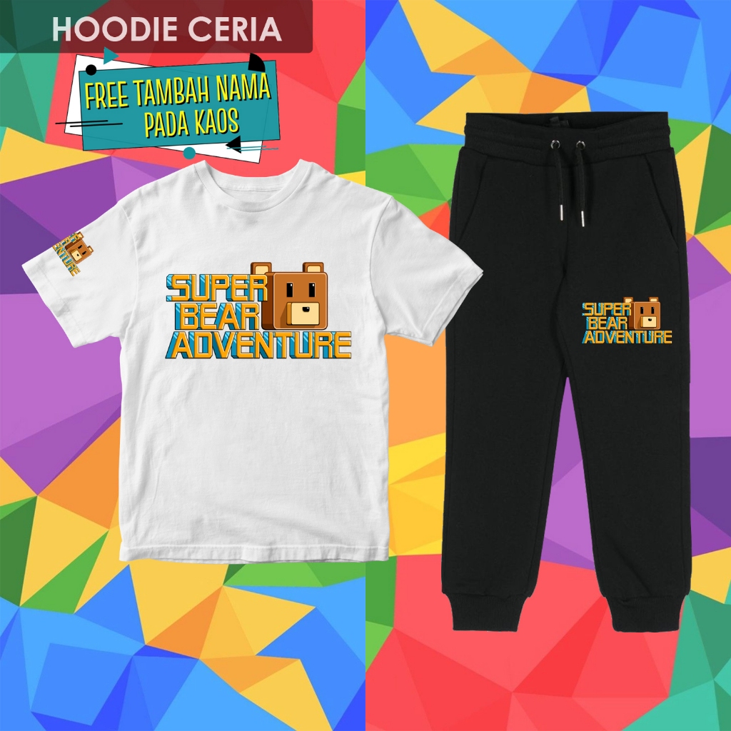 [GRATIS TAMBAH NAMA] SETELAN KAOS ANAK SUPER BEAR ADVENTURE - SET BAJU SUPER BEAR ADVENTURE ANAK