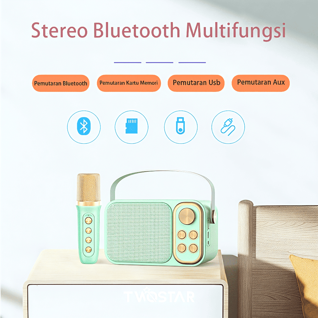 TWOSTAR TS-105 2 Mic Speaker Bluetooth Karaoke Set Home TV Youtube Portable Wireless