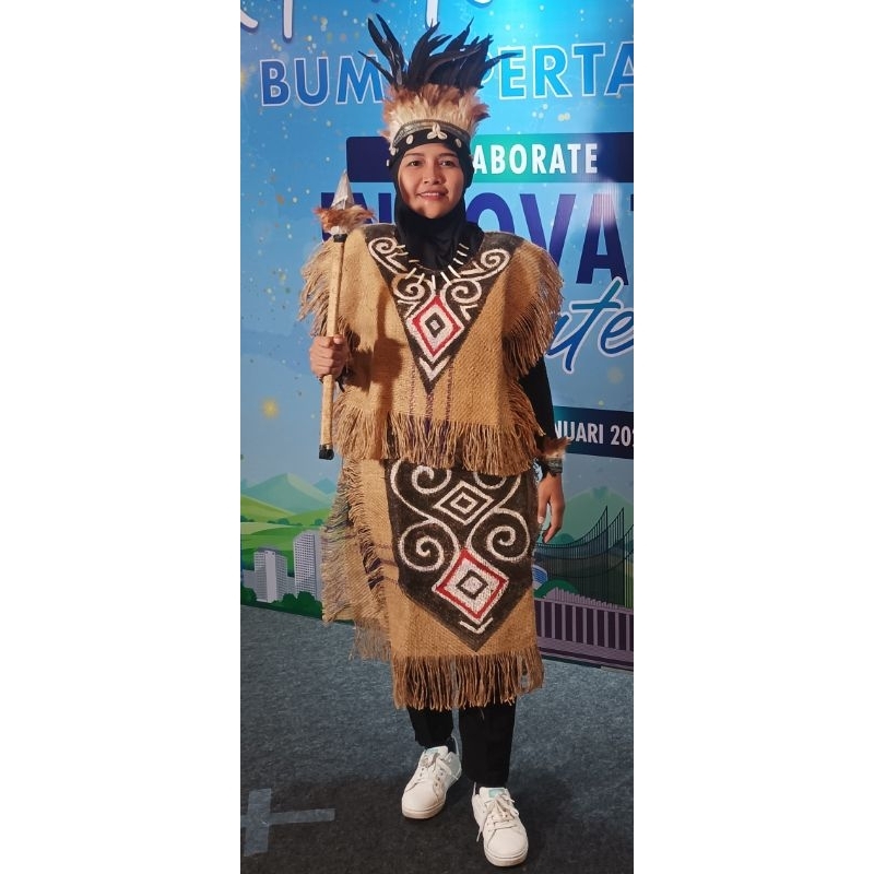 Kostum baju adat pedalaman Papua karung Goni baju etnik daur ulang untuk perempuan Papua dan Dayak