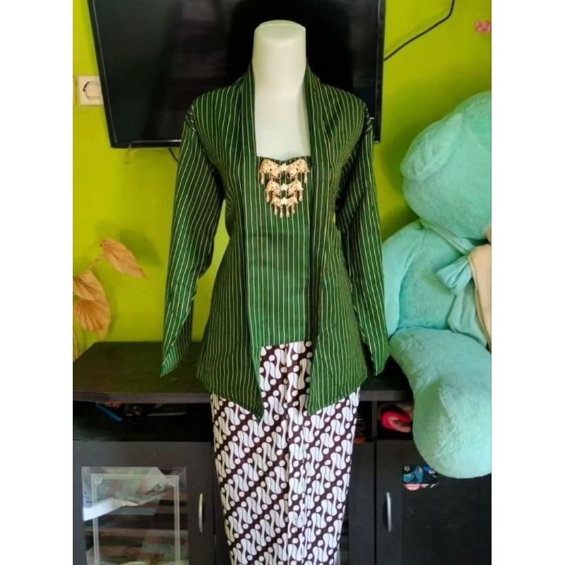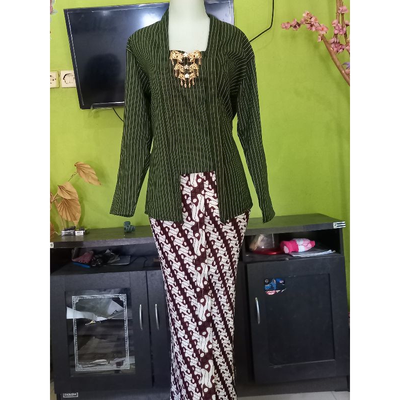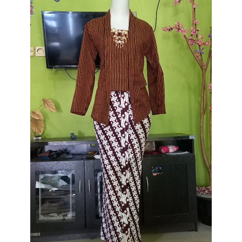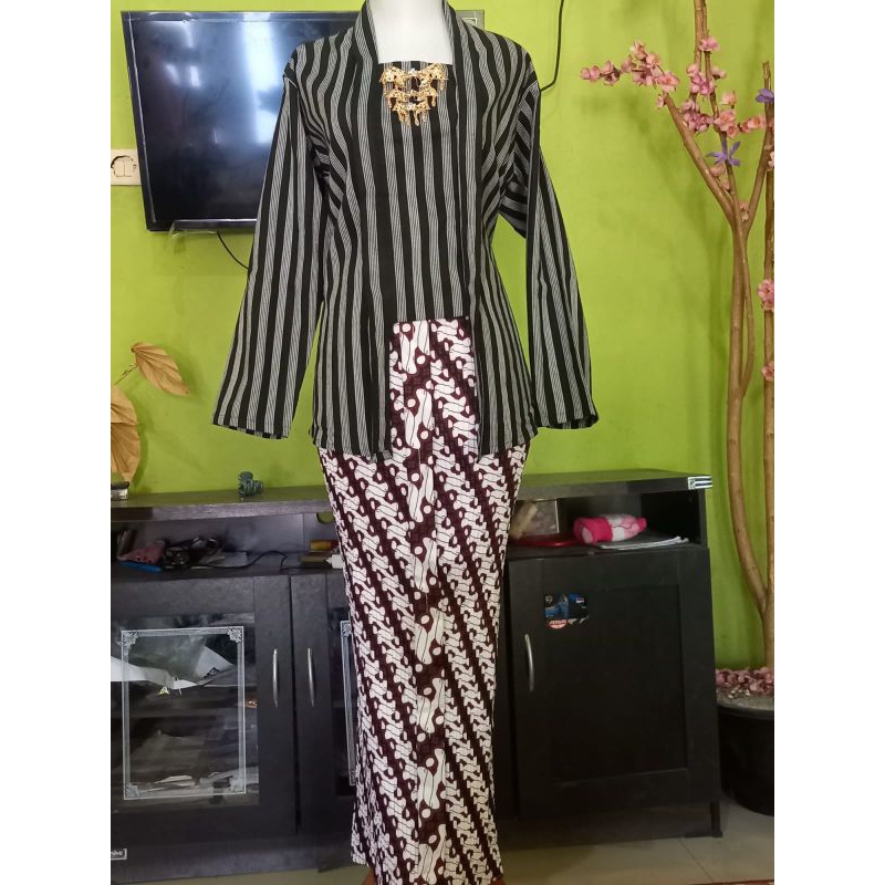 Kebaya Lurik Kutubaru Wanita Dewasa dan Rok Plisket