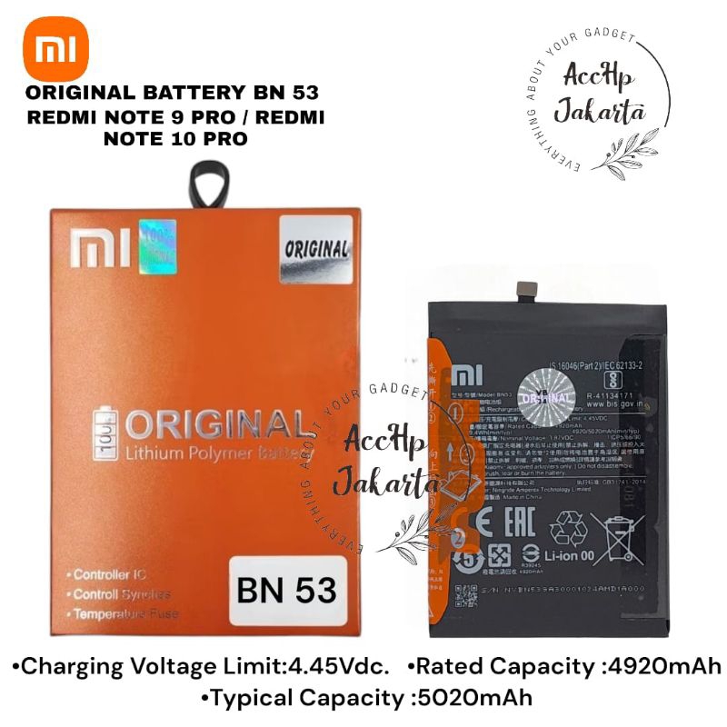 Batre Baterai Redmi Note 9 Pro 4G Redmi Note 10 Pro 4G BN53 BN 53 Batrei Original 100 PERSEN DISTRIBUTOR