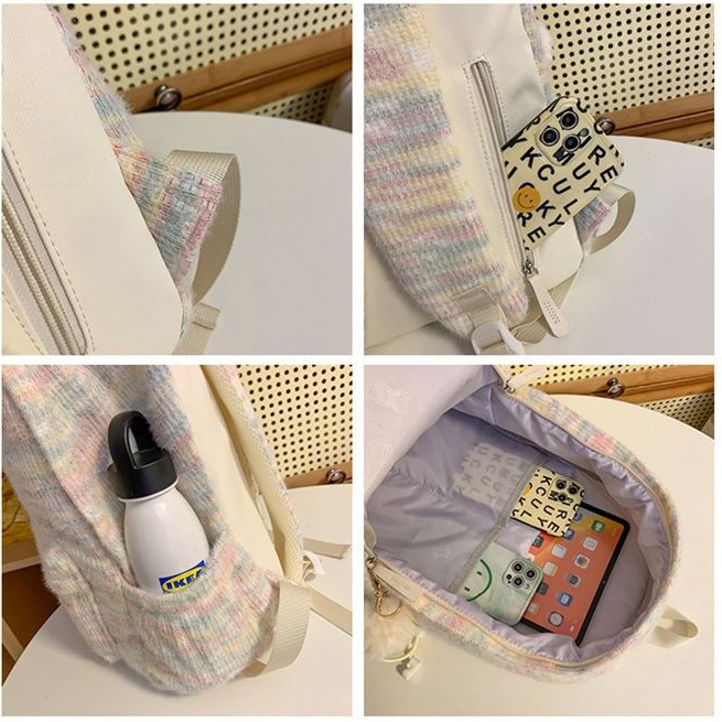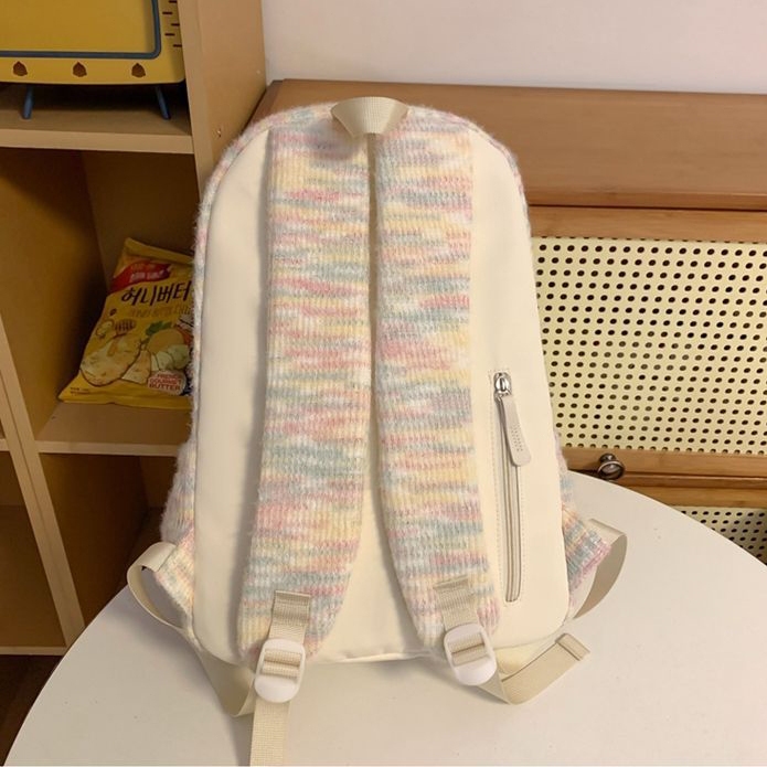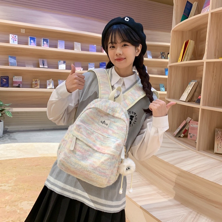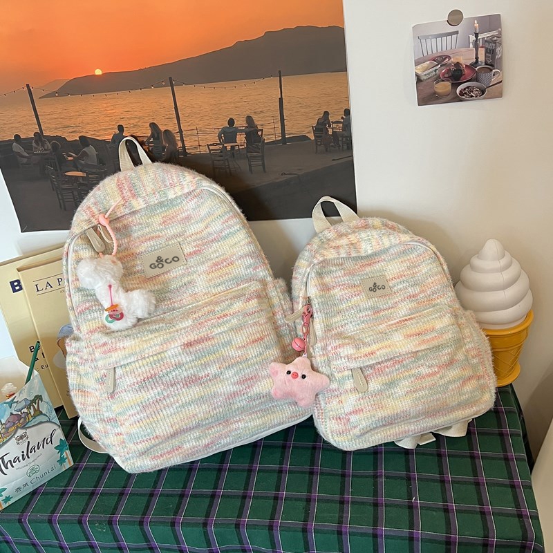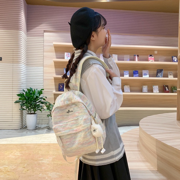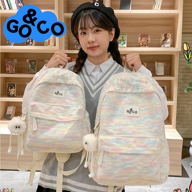 GO&CO Pelangi Mewah Rajutan Tas Sekolah Wanita Jepang Tas Bahu Mini Ransel Siswa Fashion Bag Kuliah