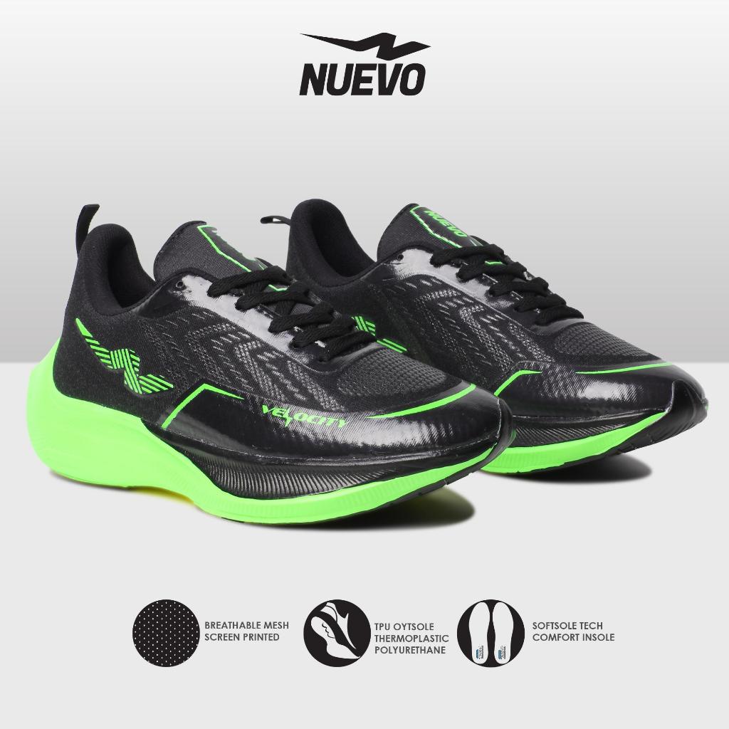 NUEVO - Velocity Hitam Ijo Sepatu Running Sneakers Olahraga Lari Pria