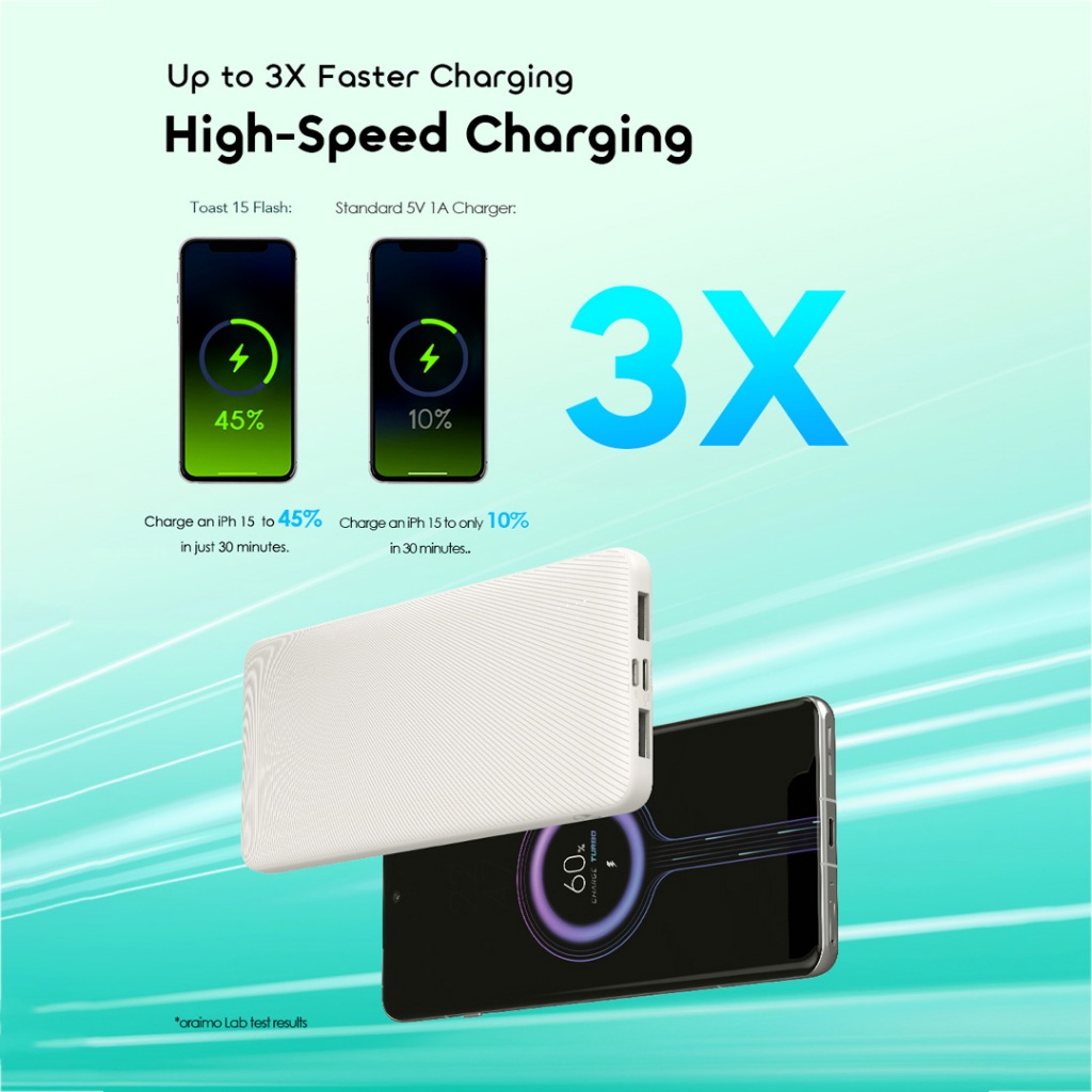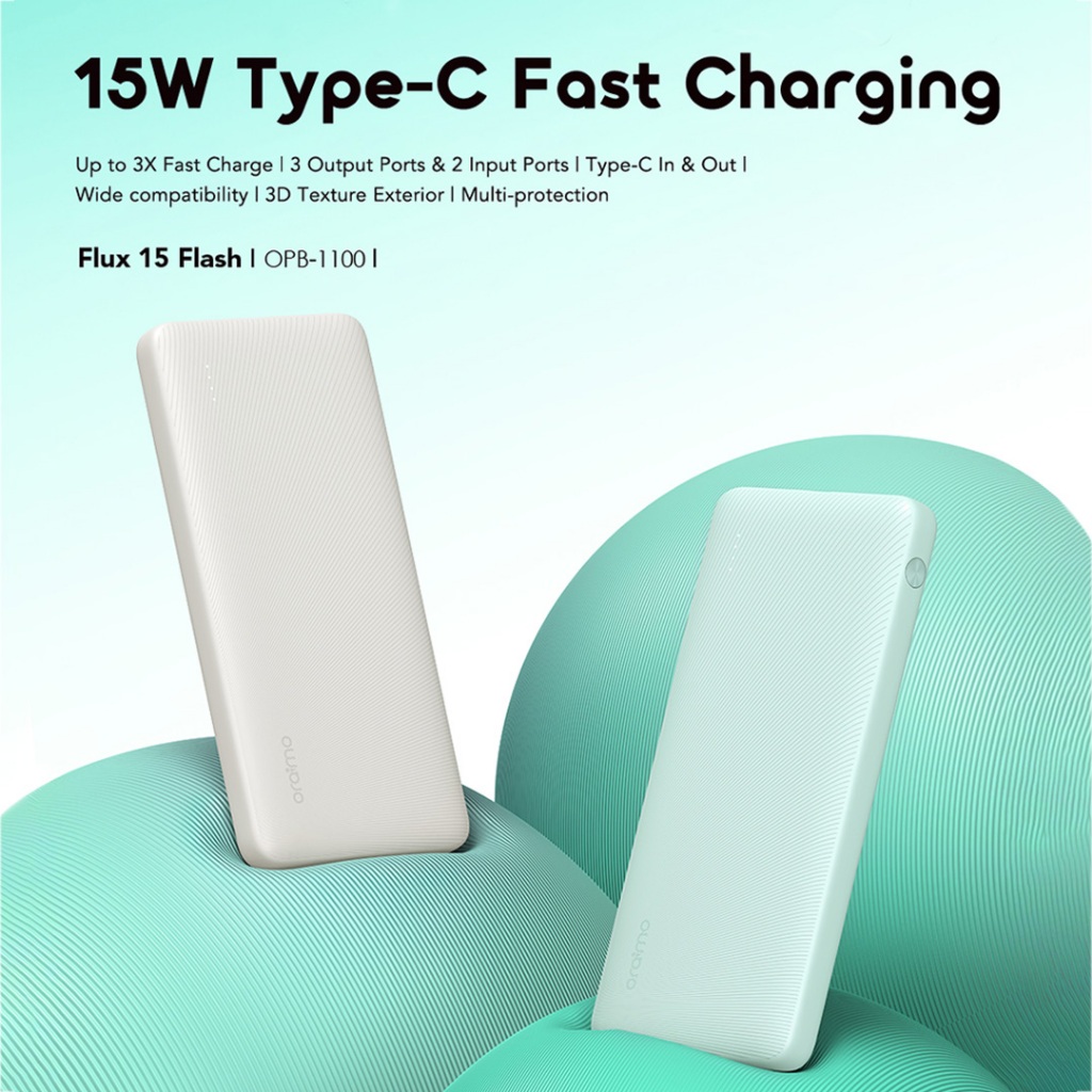 oraimo Powerbank Toast 15 Flux Real Capacity 10.000 mAH OPB-1100D Kapasitas Nyata MPL Mobile Legends Pengisian Cepat Fast Charging Type-c USB Micro Triple Output Pengisian Cepat Waterproof