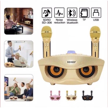 Speaker Bluetooth Karaoke SDRD SD 306 Wireless Mic Karaoke Dual Mikrofon Nirkabel