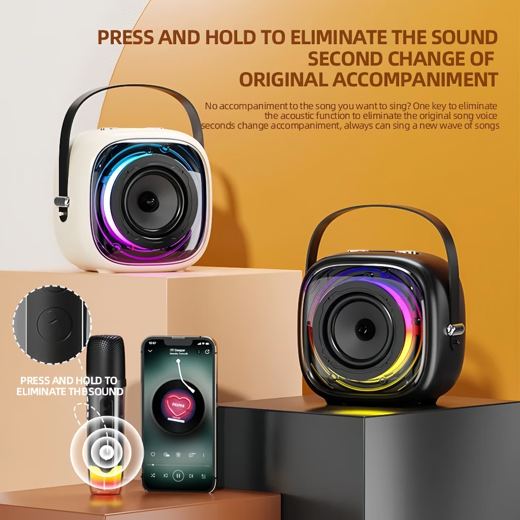 LENYES Speaker Karaoke Bluetooth Wireless Microphone KTV RGB LED Light Bluetooth 5.3 Mini Portable