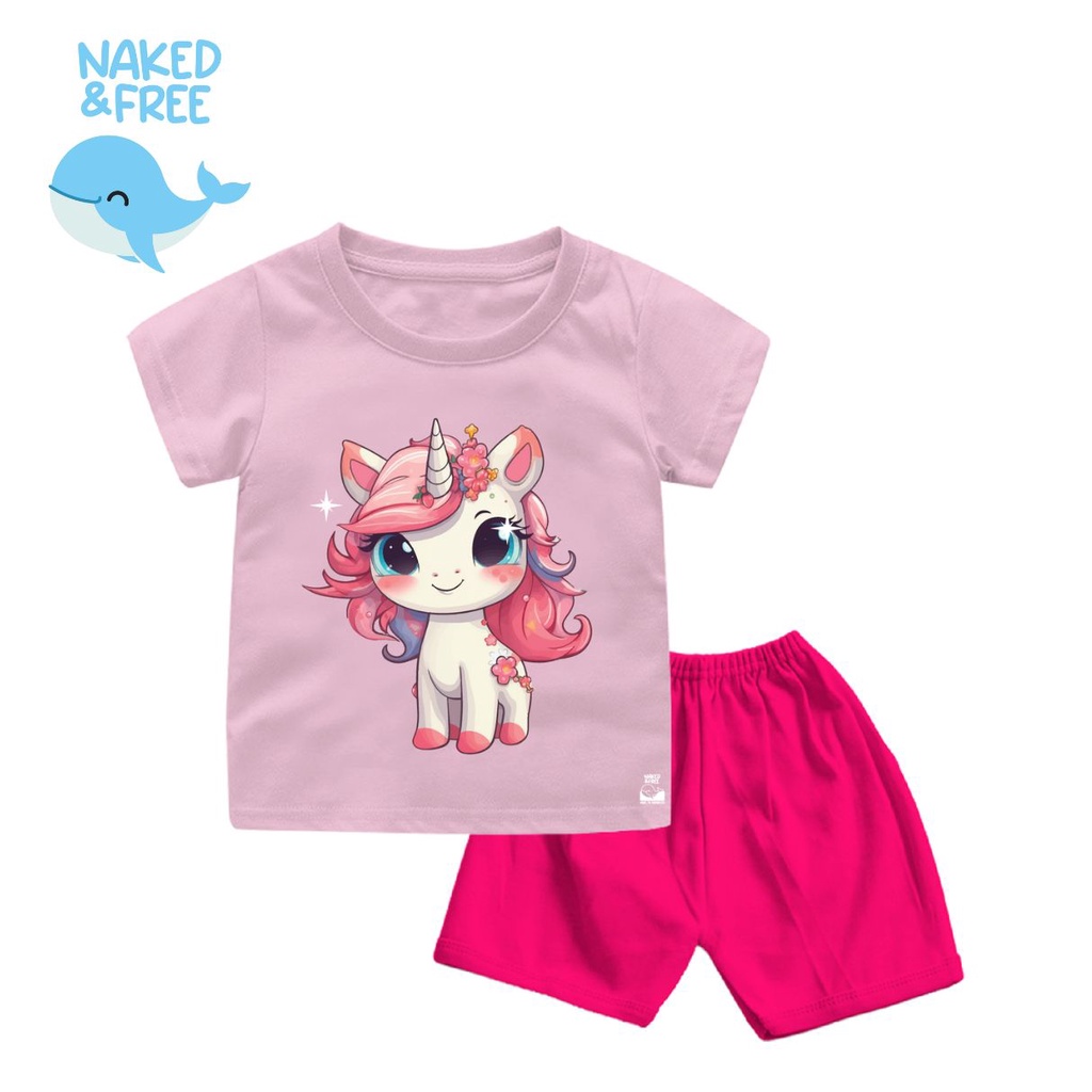 NAKED & FREE SETELAN BAYI ANAK SERI PINK UNICORN USIA 6 BULAN - 8 TAHUN BAHAN KATUN COMBED 30S