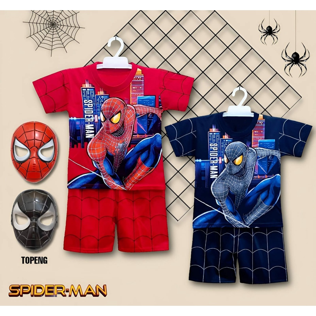 SETELAN BAJU ANAK SPIDERMAN LENGAN PENDEK SPIDER AMAZING HITAM MERAH