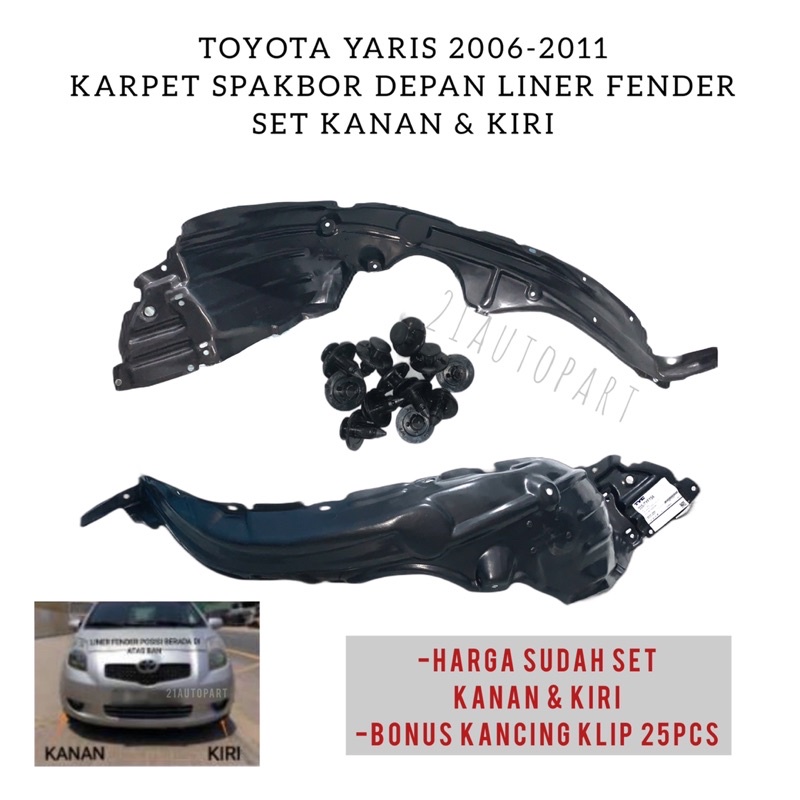 Toyota yaris 2006-2011 karpet spakbor depan liner fender set kanan kiri