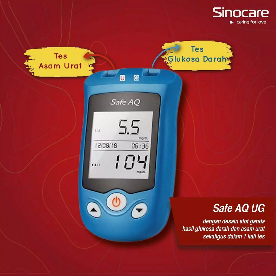 ALAT Sinocare Safe AQ UG Meter - Alat Cek Gula Darah dan Asam Urat Hanya ALAT