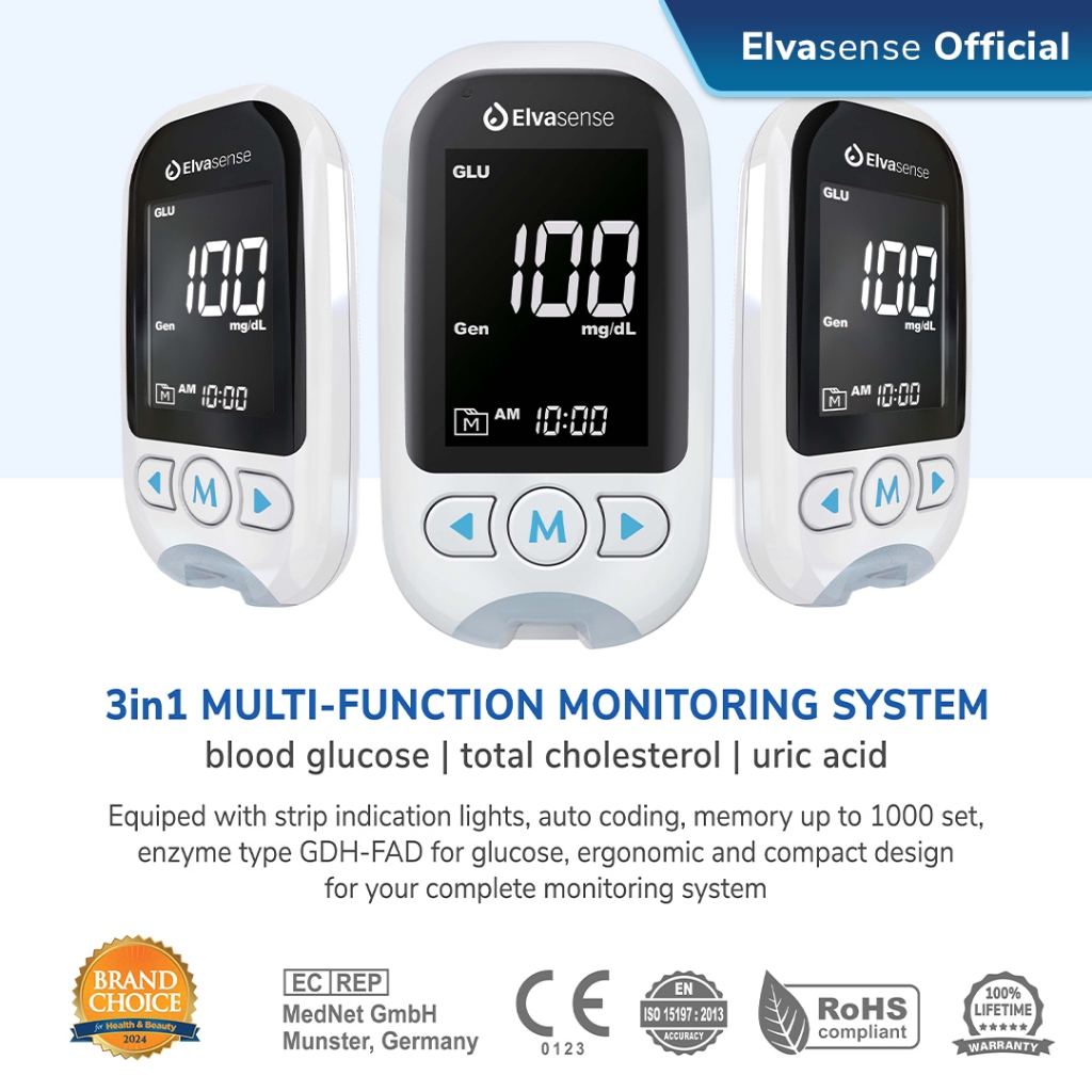 Alat Cek 3in1 Elvasense (Gula Darah, Kolesterol & Asam Urat)