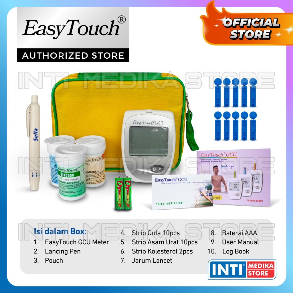 EASYTOUCH - Alat Cek 3in1 GCU Gula Darah + Kolesterol + Asam Urat with LCD Display | Blood Glucose Cholesterol Uric Acid
