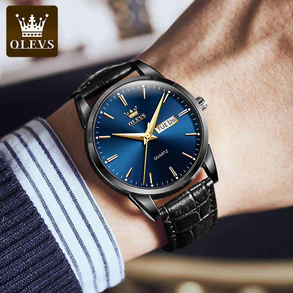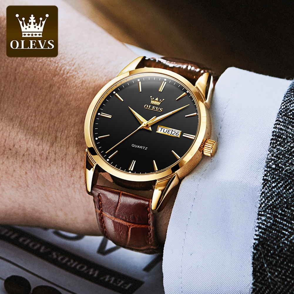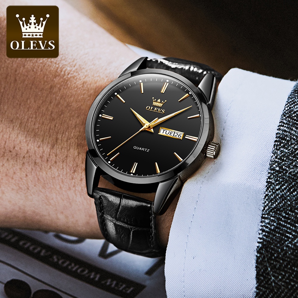 [Mall] OLEVS Jam Tangan Pria Anti Air Original Tahan Kulit Tali Laki Laki Cowok Men Watch Hitam Putih 6898