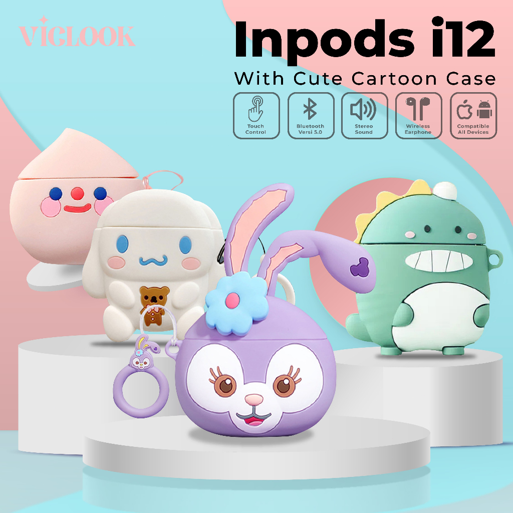 VICLOOK Headset Bluetooth i12 TWS Bluetooth Earphone Bluetooth Android Lucu i12 Case 3D Karakter