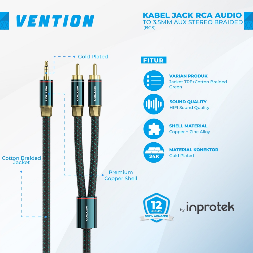 Vention Kabel Audio 3.5mm to RCA 2 Male for Speaker